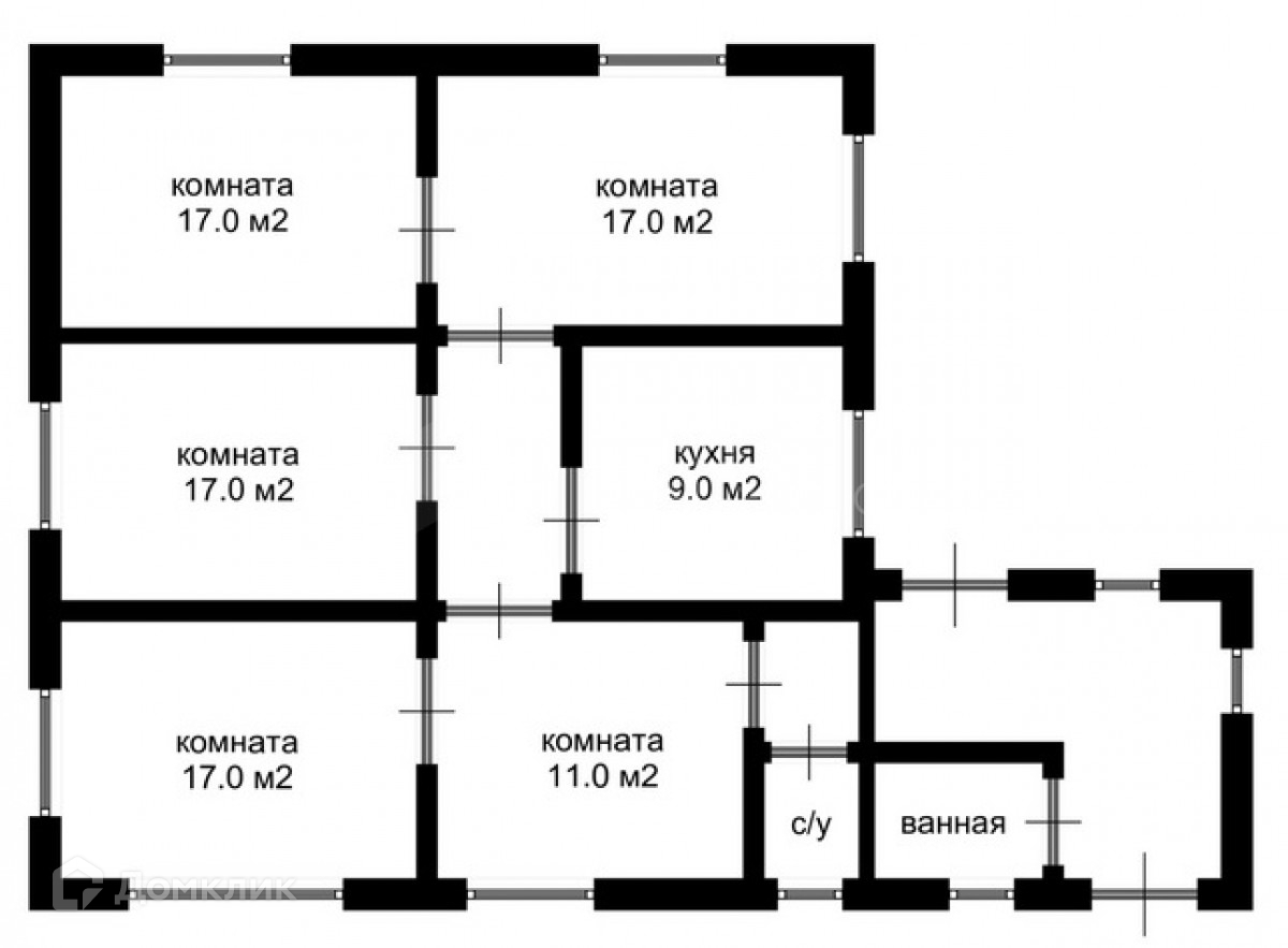 Перекрытия деревянные по балкам толщиной 400мм. Перед входом - крытая веранда. Коридор обшит обработанным блокхаусом. Сантехнические помещения в блочной части. Крыша мансардного типа. При необходимости можно обуь 2й этаж. В доме пять комнат (17-17-17-16-14 кв м), кухня 9 кв. м. 2 санузла. - отделка стен декоративной штукатуркой. Потолок - вагонка, высота этажа 2,7м, пол - ламинат укладывался по доскам толщиной 50 мм; утеплен шлаковатой, гидро-пароизоляция.