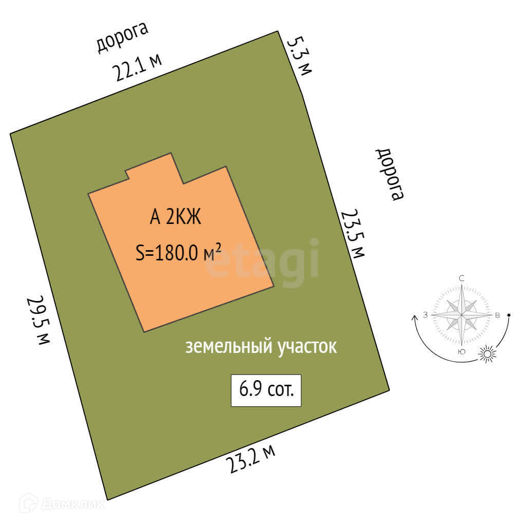 Площадь участка 6.9 сот.