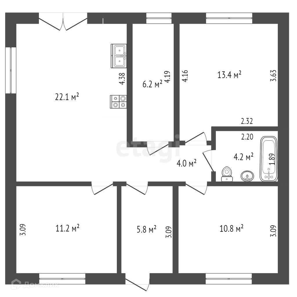 Фундамент дома - монолитно утепленная плита. Имеется отмостка. Установлены подоконники и большие окна фирмы Rehau. По всему дому тёплые полы, так же проведен газ. Скважина 38 метров, септик на 10 кубометров. Планировка - максимально продуманная: кухня-гостиная, 3 комнаты правильной квадратной формы и два санузла, так же имеется утепленная отапливаемая терраса.