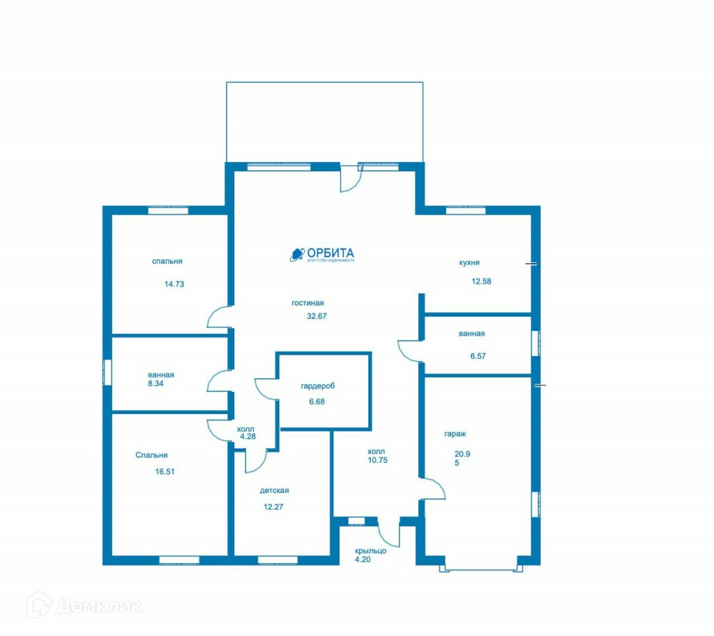 3 полноценных спальни (площади 14,7м2, 16,5м2 и 12,3м2); кухня (площадь 12,6м2) объединенная с гостиной (площадь 32.2 м2); 2 сан. узла (площади 6,6м2 и 8,3м2); гардеробная (площадь 6,7м2), а также гараж (площадь 21м2).