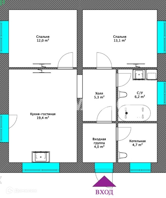 Общая площадь 65 м2