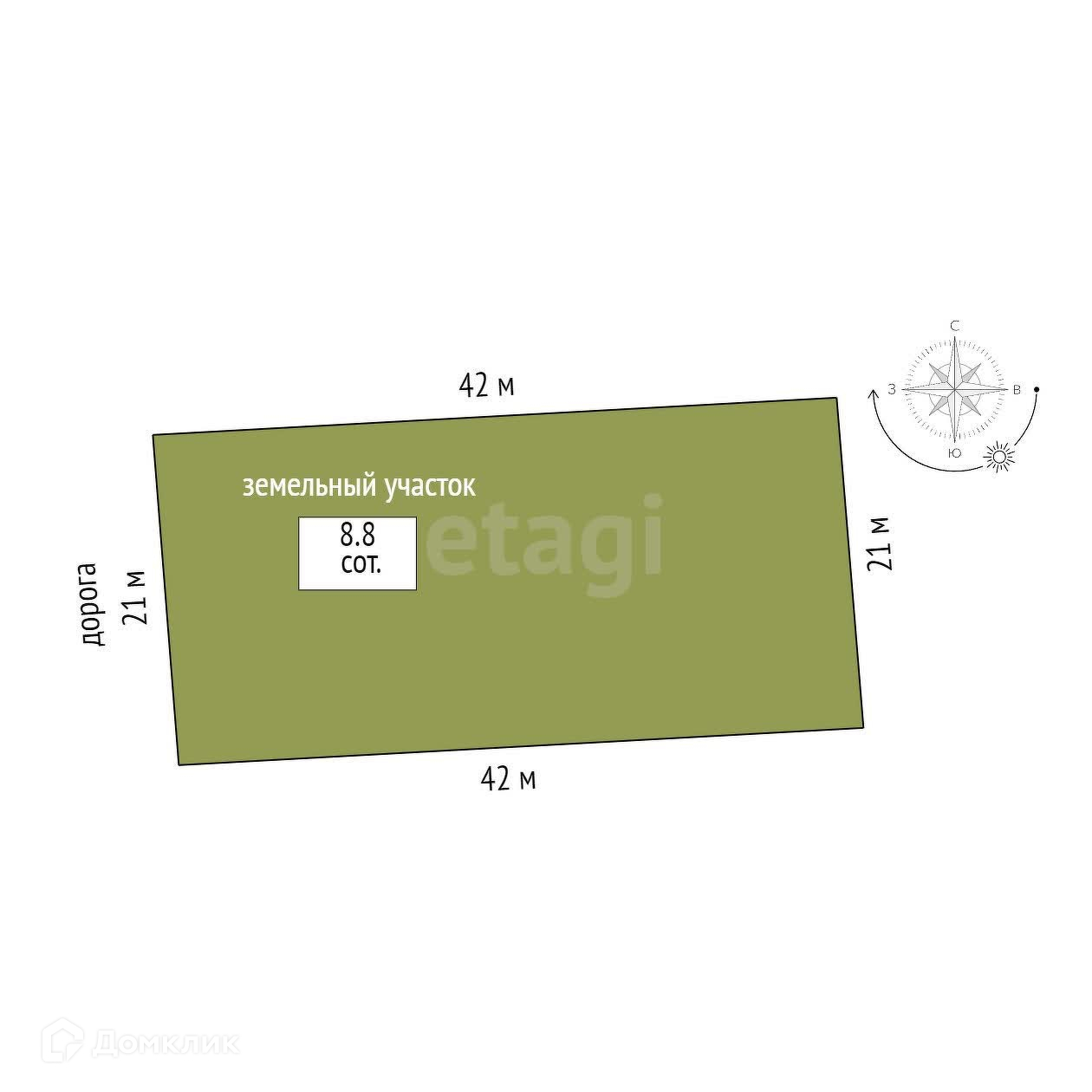 Площадь участка 8.8 сот.