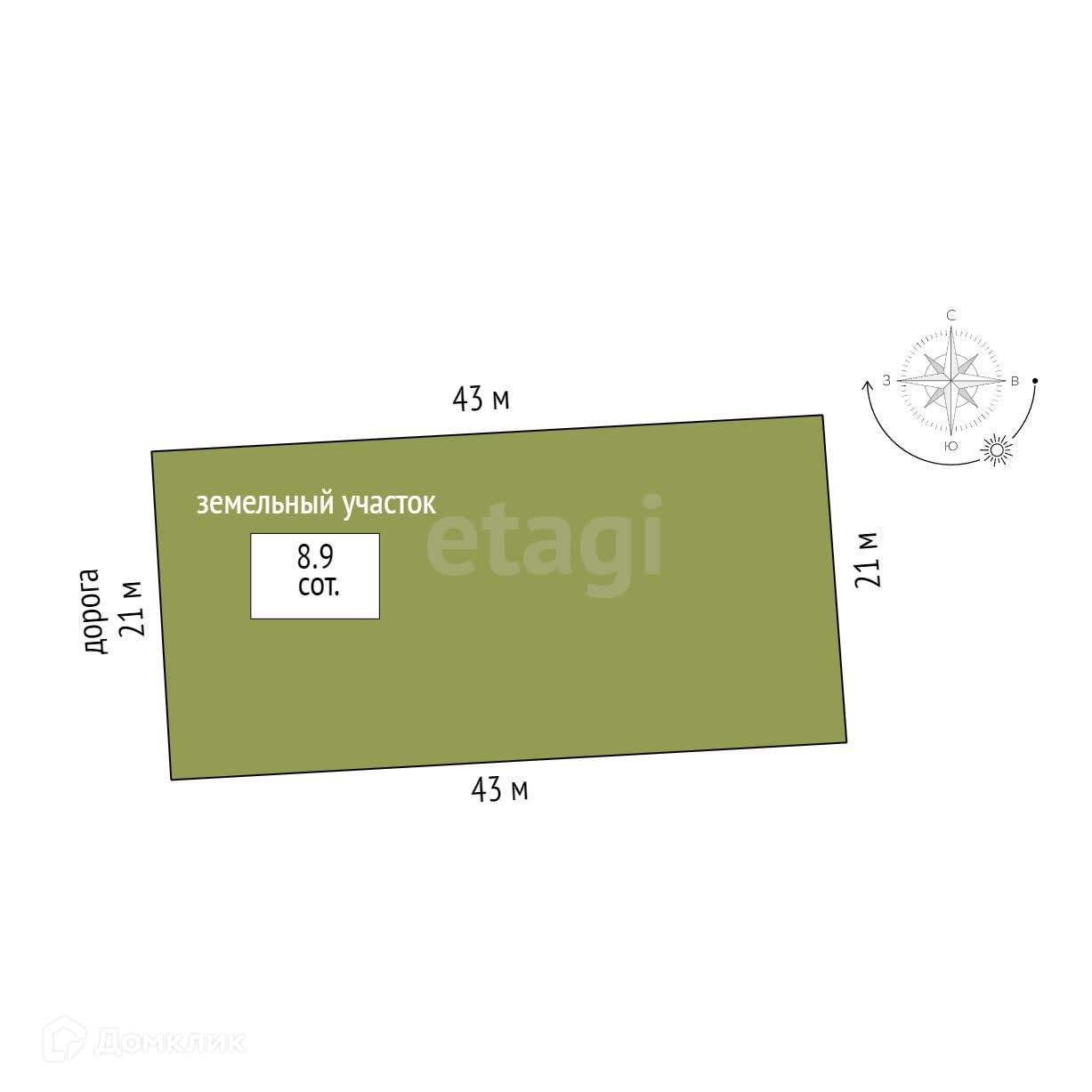 Площадь участка 8.9 сот.