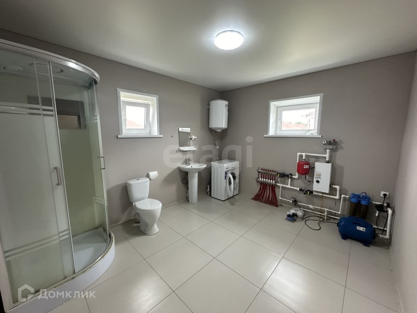 Отопление: индивидуальный электрокотел, монтированный водяной теплый пол, расширительный бачок, коллектор для теплого пола, циркуляционный насос.