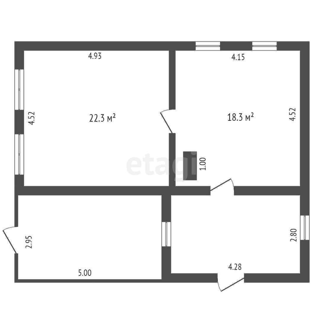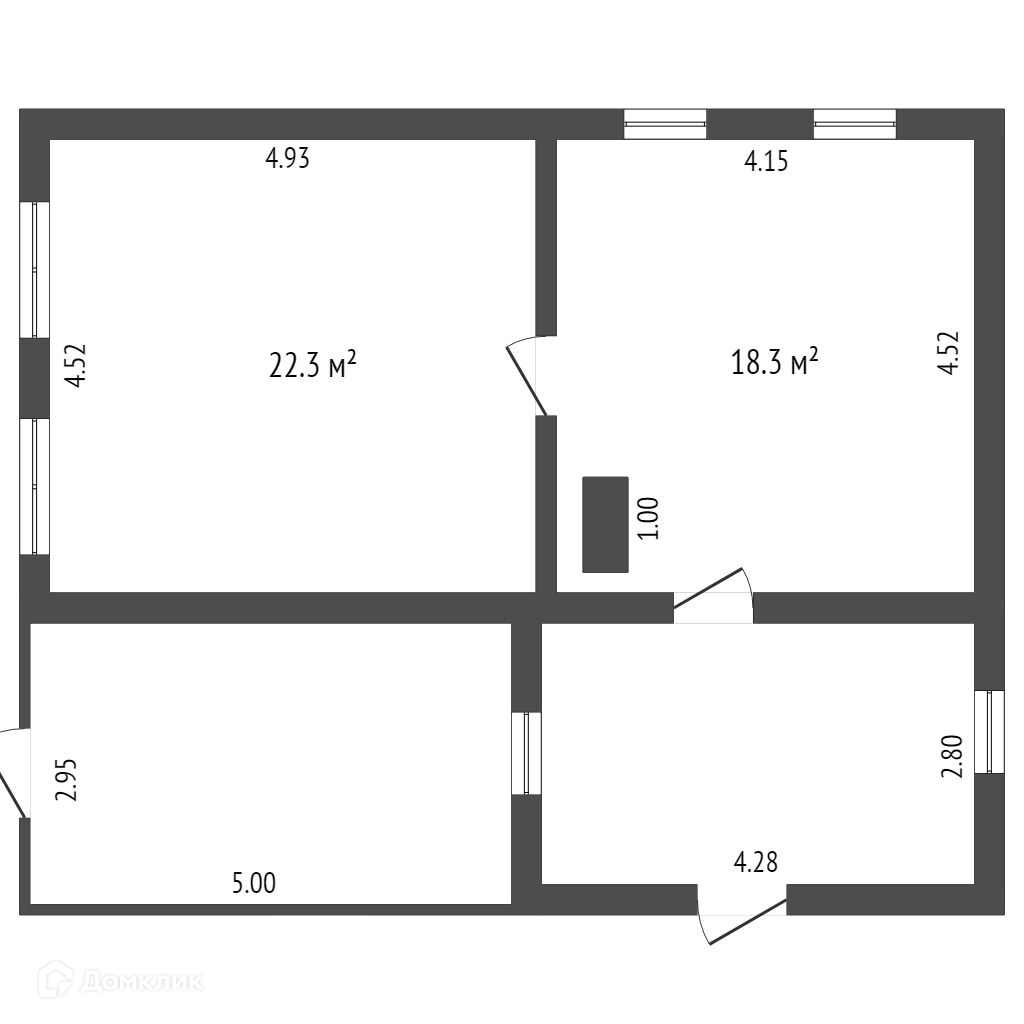 Общая площадь 40.6 м2