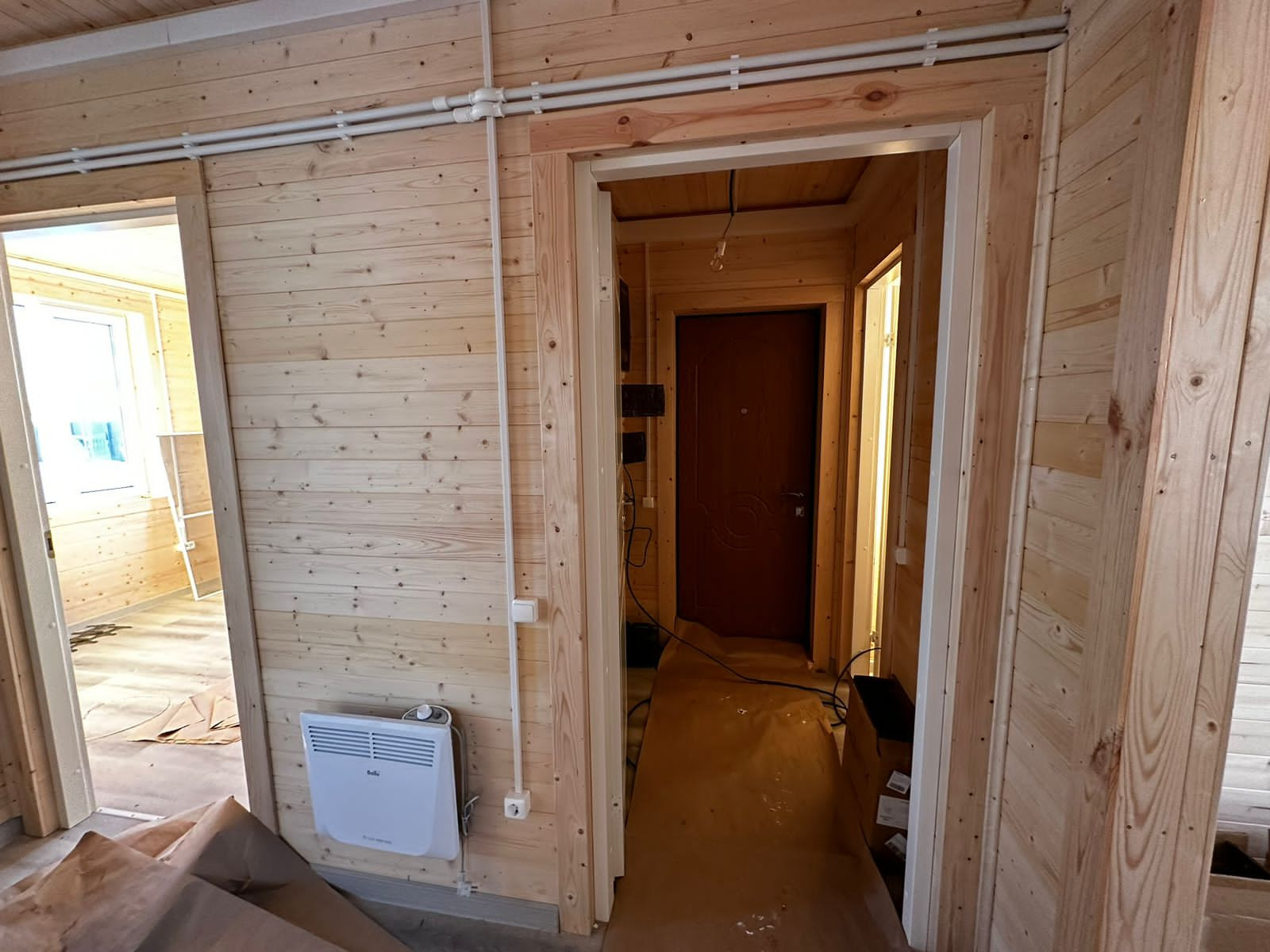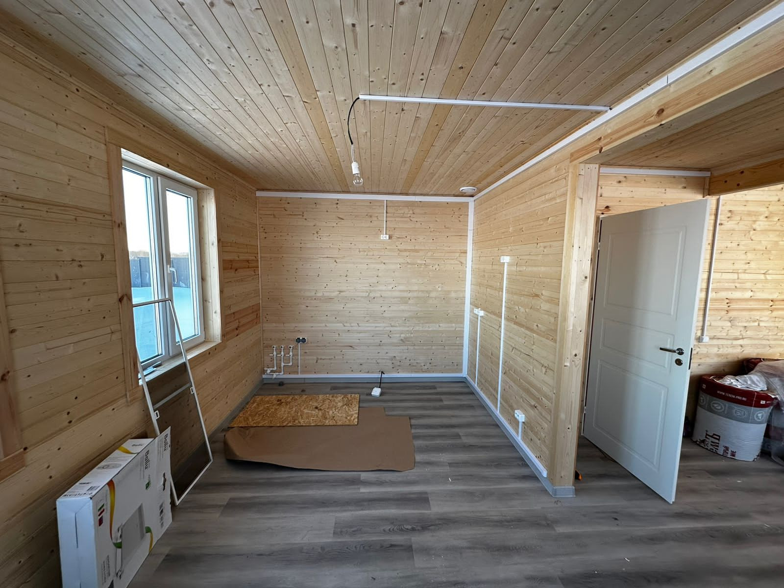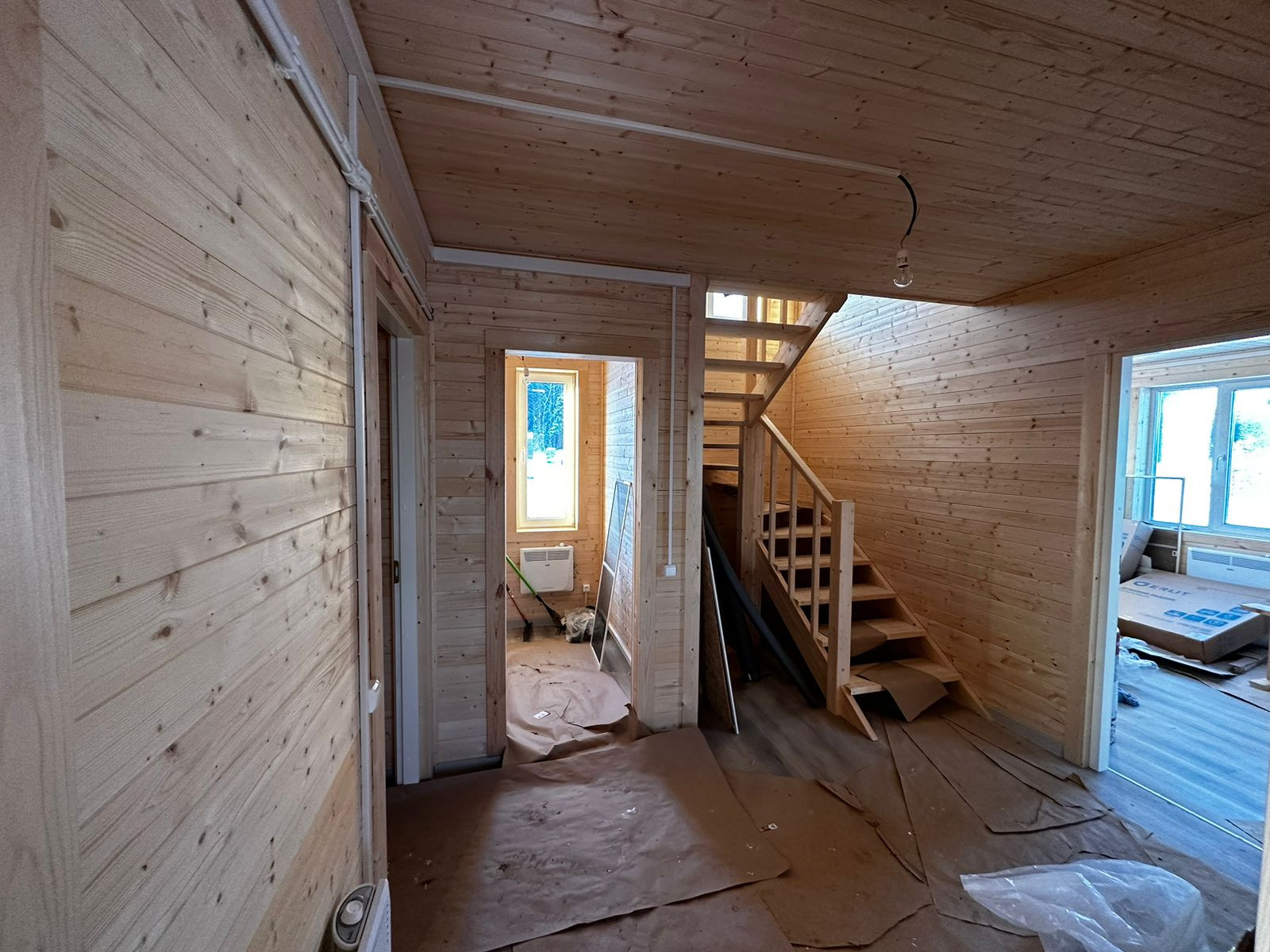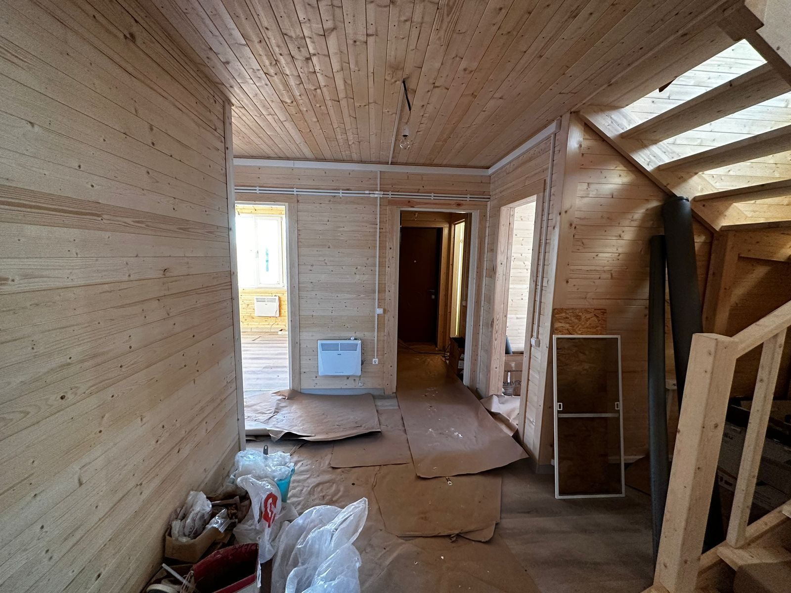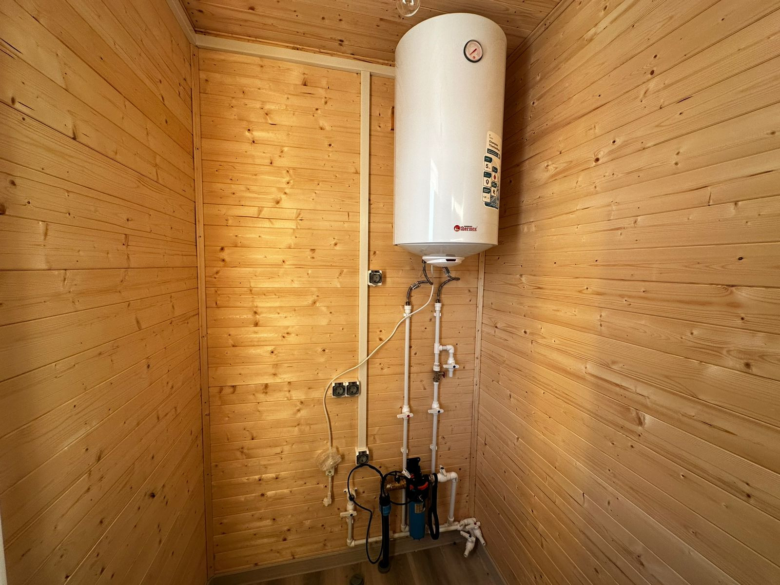 В дом заведена вода - артезианская скважина 117 м, электричество 15 кВт. Отопление электрическое. К 2026 году планируется газификация поселка. Септик Астра 5. Установлена вся необходимая сантехника, осветительные приборы, розетки и радиаторы отопления. Стены и потолки обшиты евровагонкой, полы застелены ламинатом.
