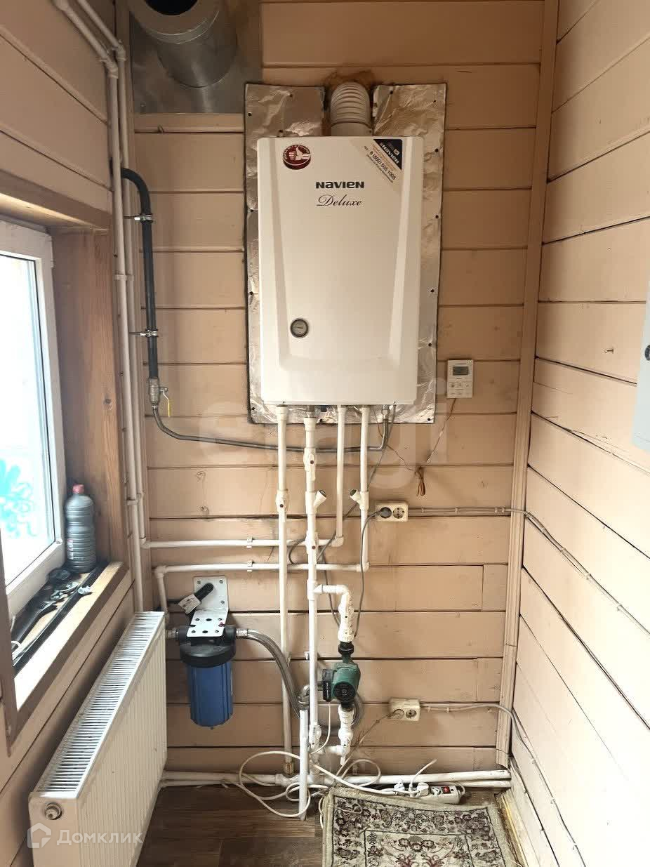 Дом построен из бруса хвойных пород, утеплен (минвата) и предназначен для круглогодичного проживания, отопление газовое (магистральный газ).