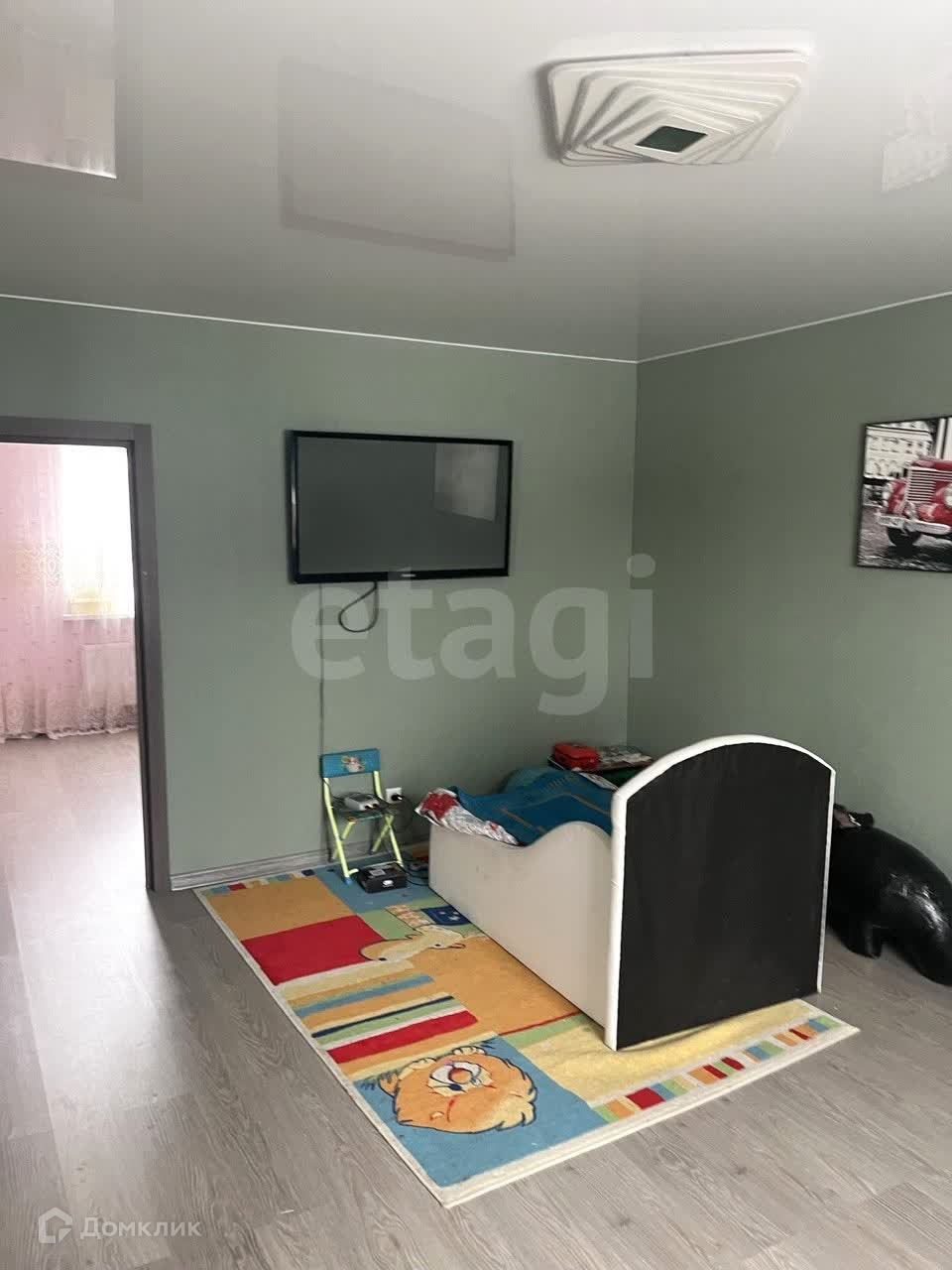 1-й этаж: прихожая, сан/узел, кухня, большая гостиная, детская спальня.