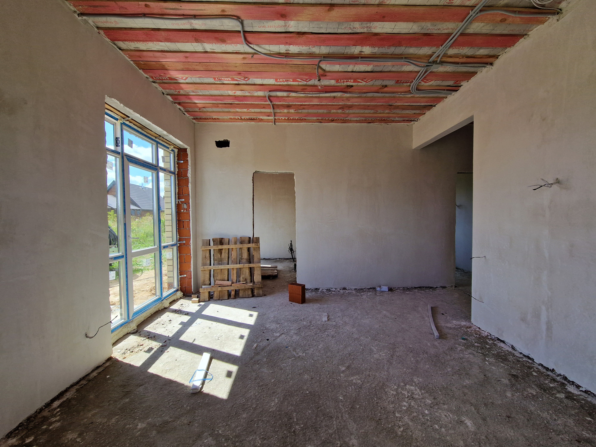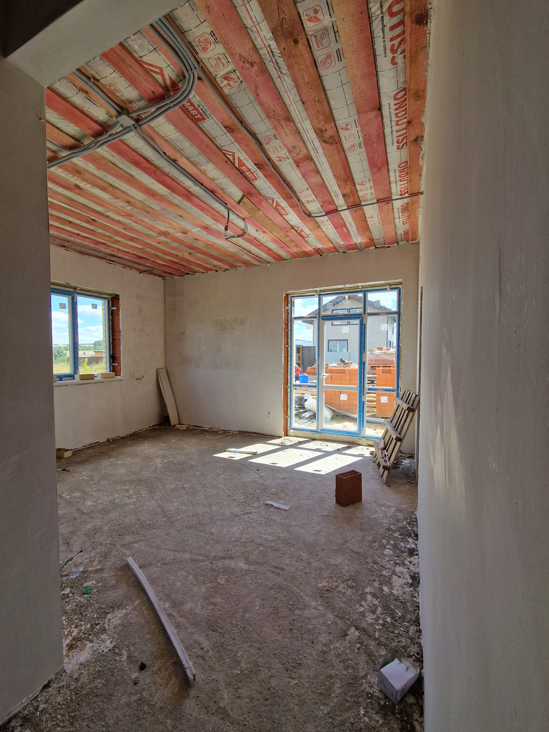 Дом в предчистовой отделке, разводка электричества по всему дому, установлены радиаторы, теплый пол по всему периметру. Все коммуникации заведены в дом.