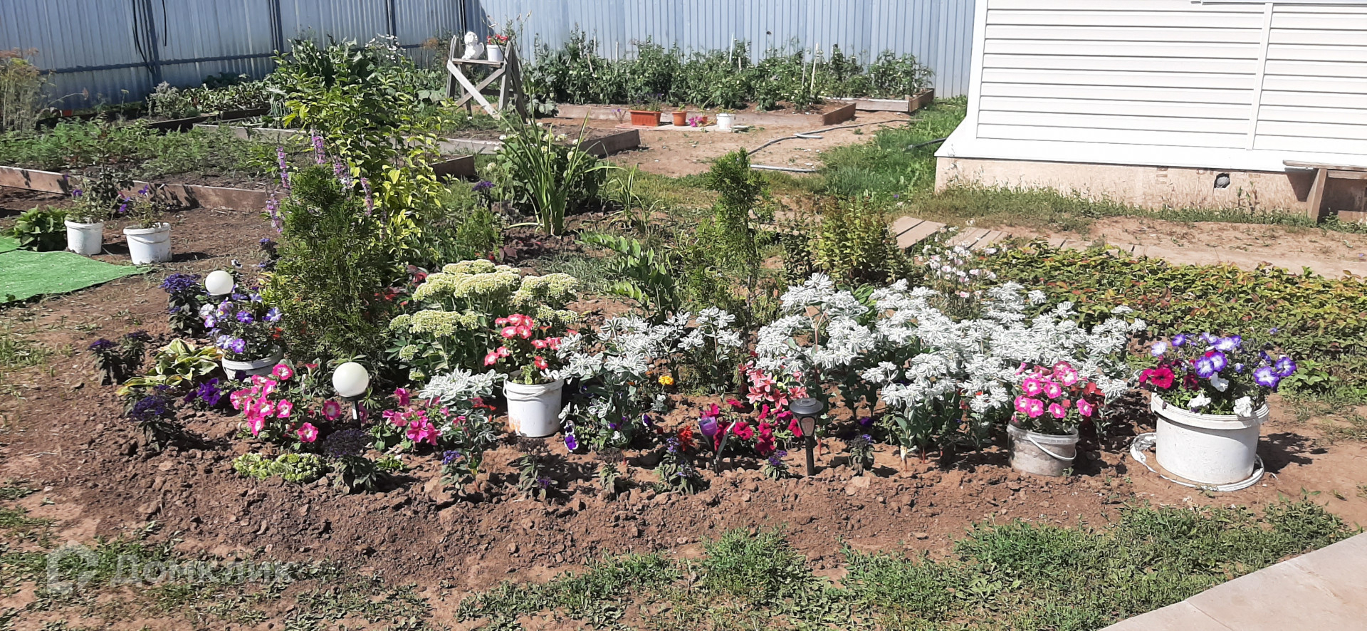 Участок огорожен забором  из профнастила .