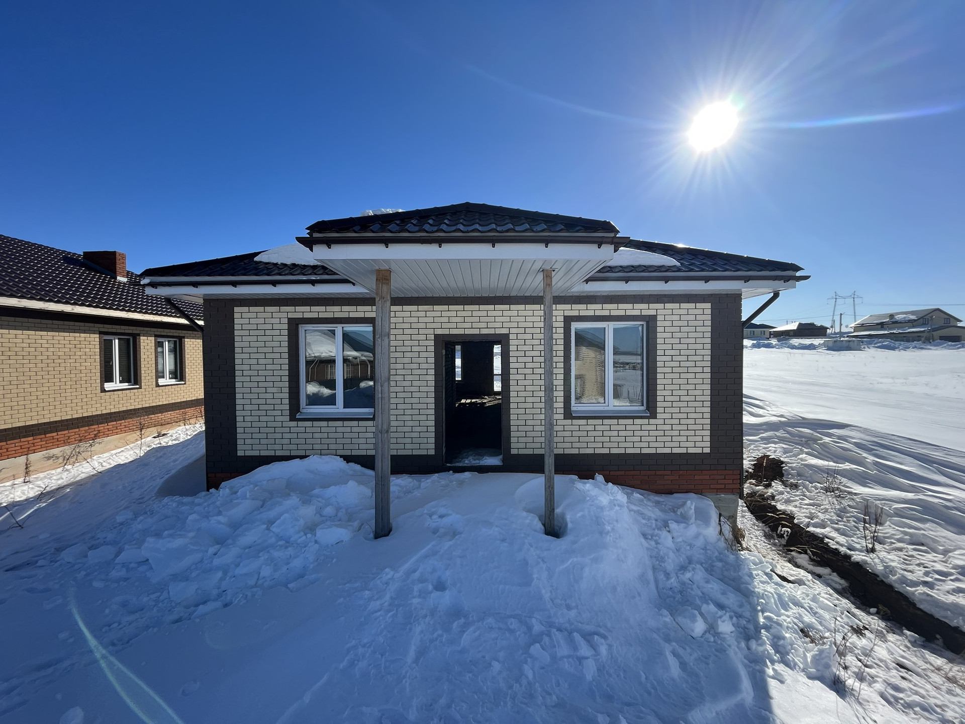 Дом продается в черновой отделке: 3 просторные спальные комнаты,сан. узел, котельная, кухня-гостиная.