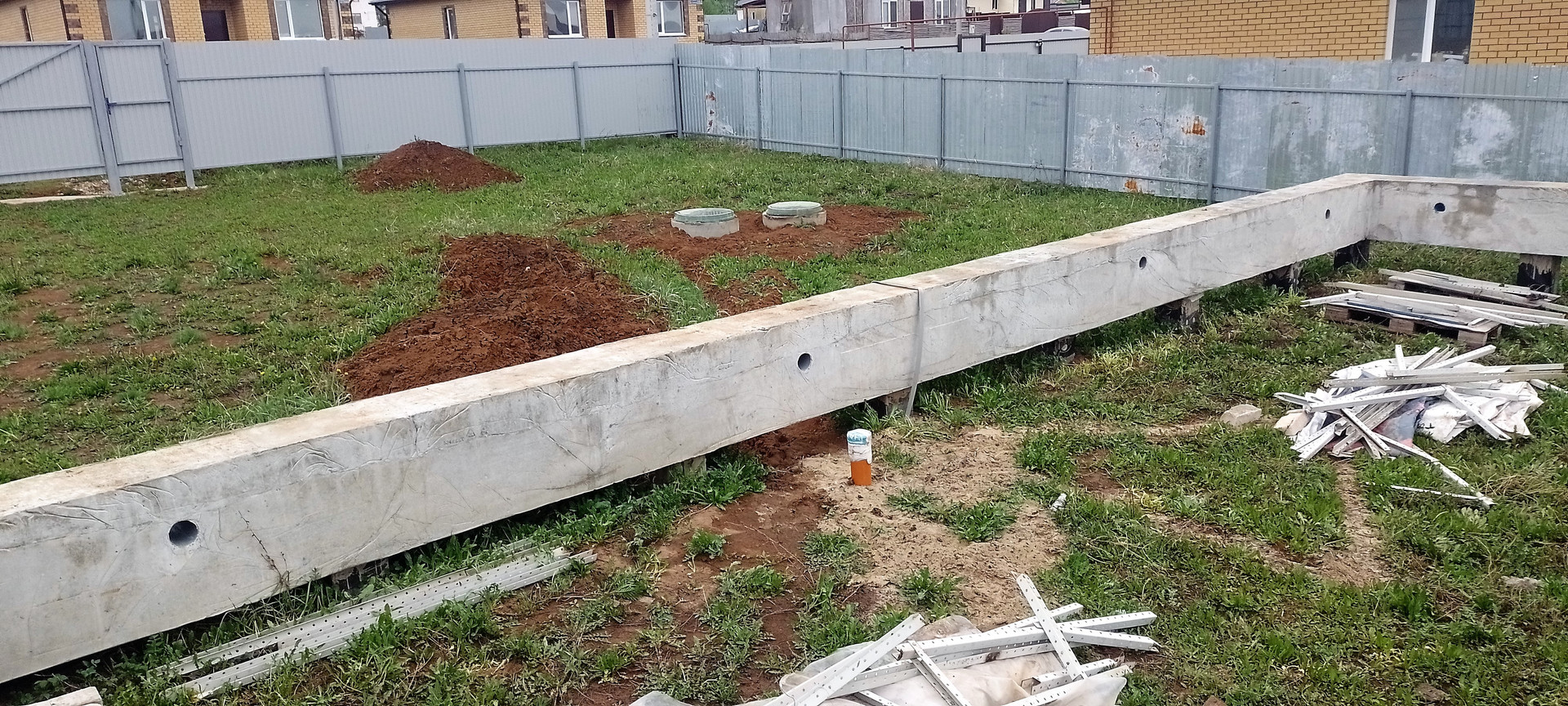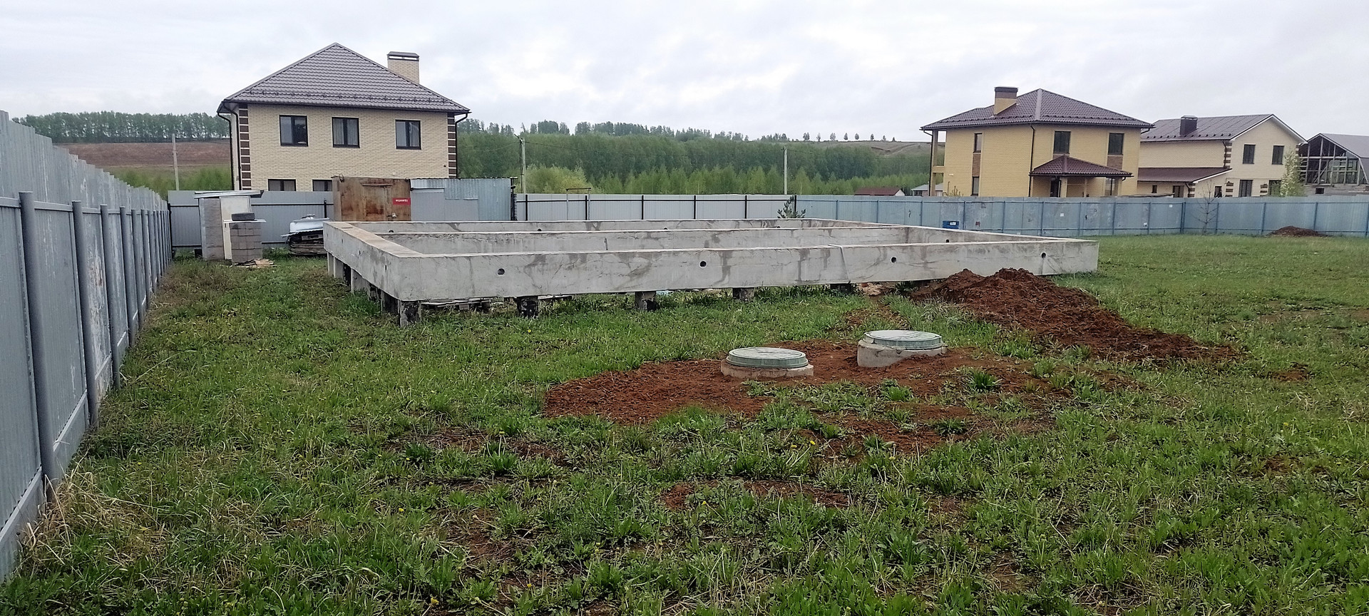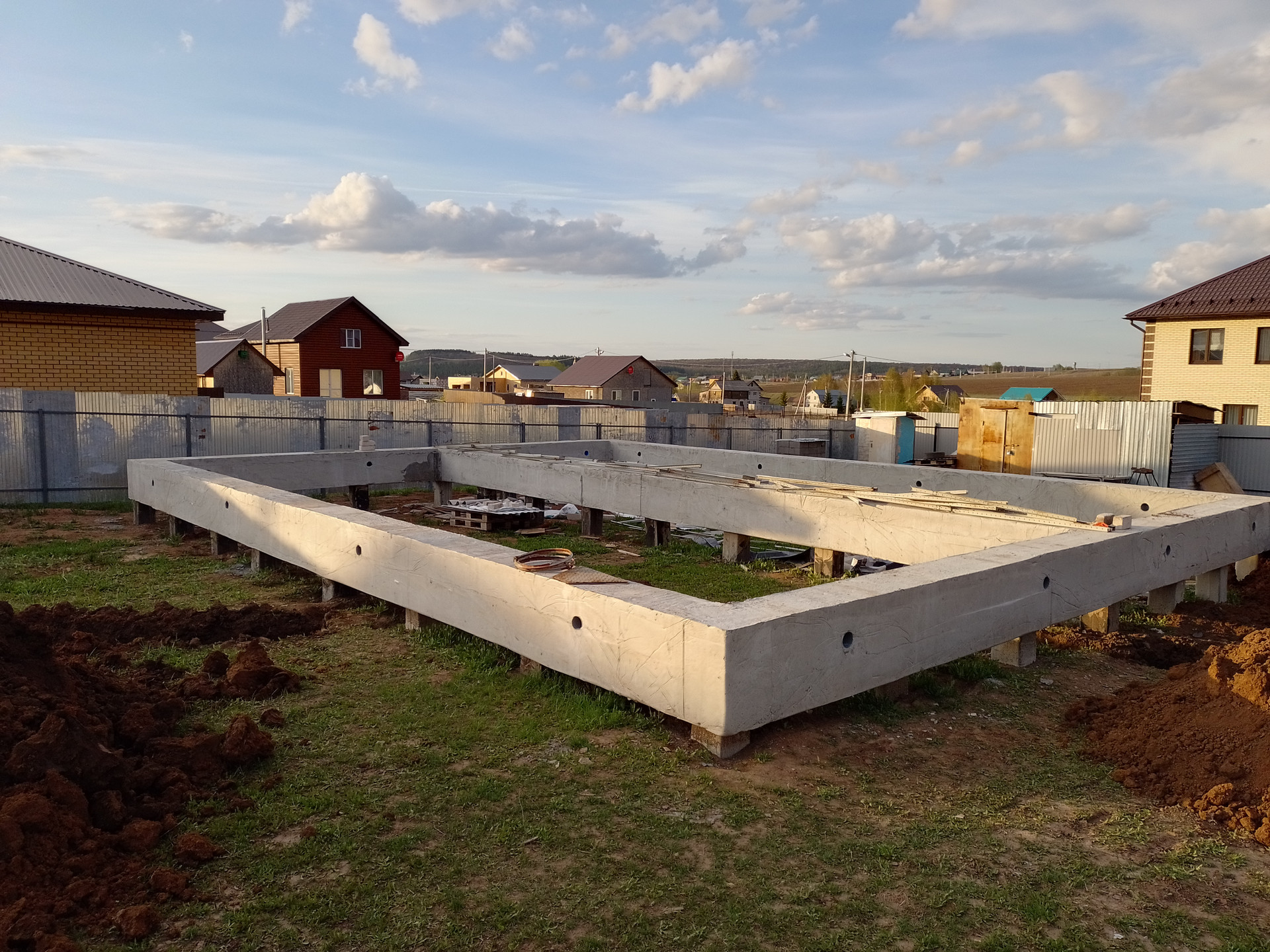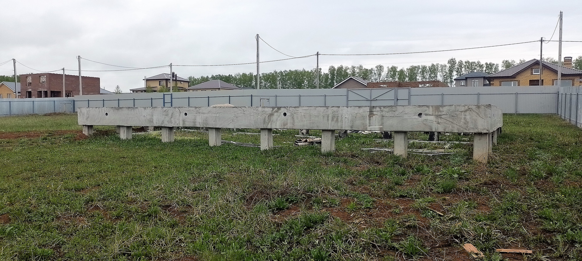 На одном из участков стоит фундамент (ленточный ростверк на буронабивных сваях), собирали и заливали тоже сами летом 21г. В данной местности грунт очень плотный, суглинок, соответственно пучинистый,