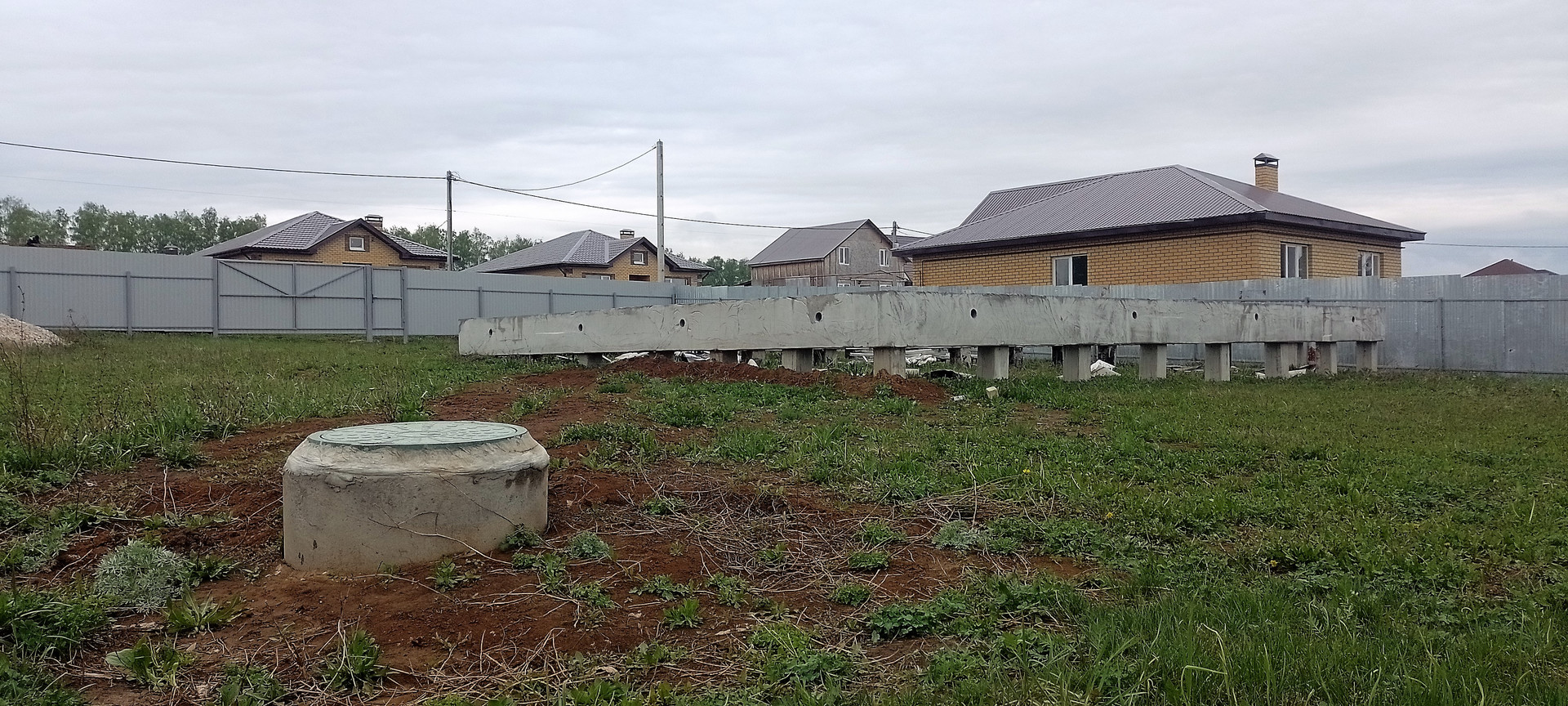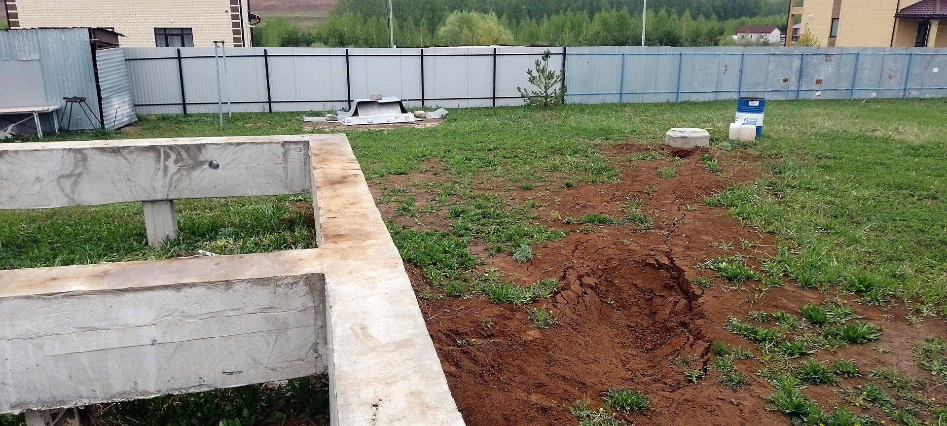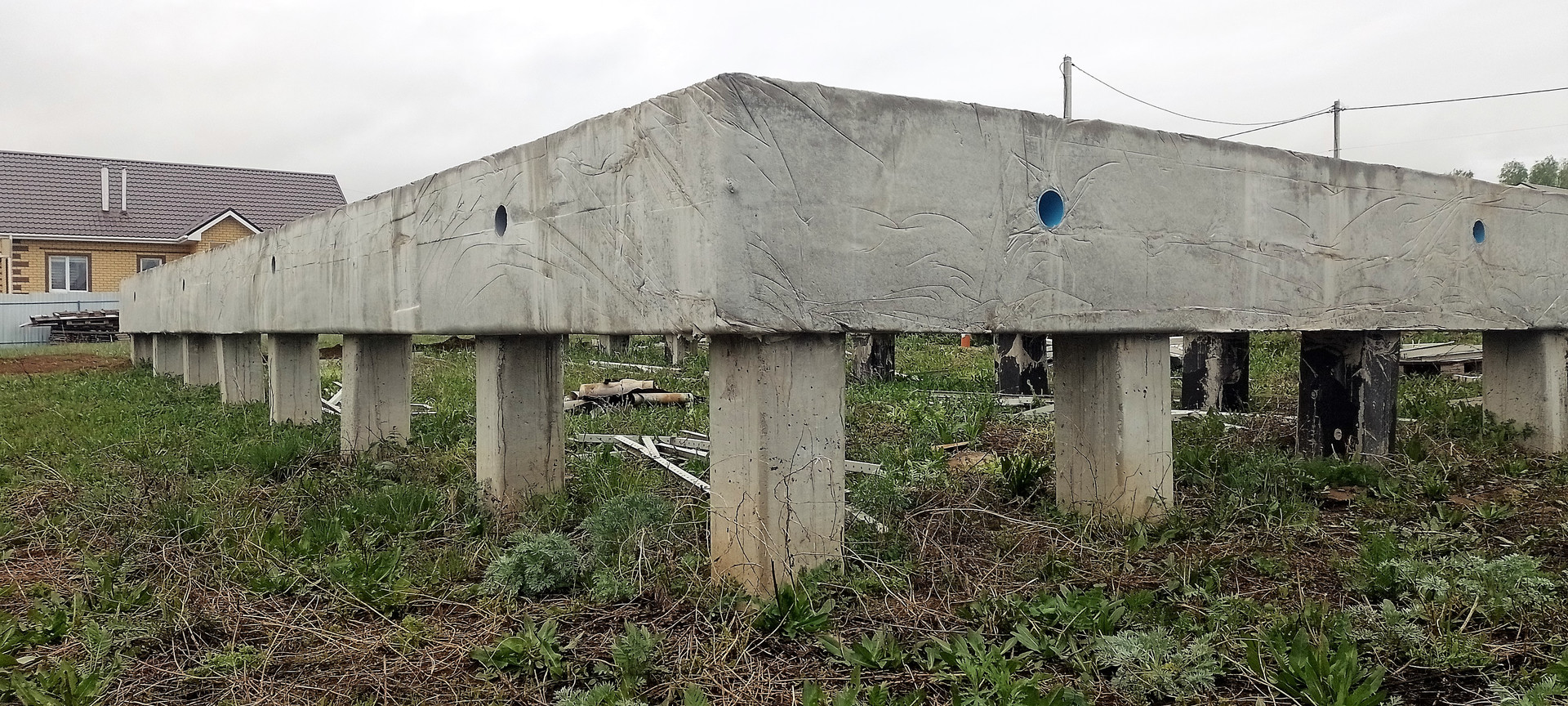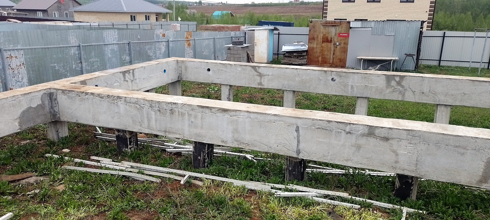 На одном из участков стоит фундамент (ленточный ростверк на буронабивных сваях), собирали и заливали тоже сами летом 21г. В данной местности грунт очень плотный, суглинок, соответственно пучинистый,