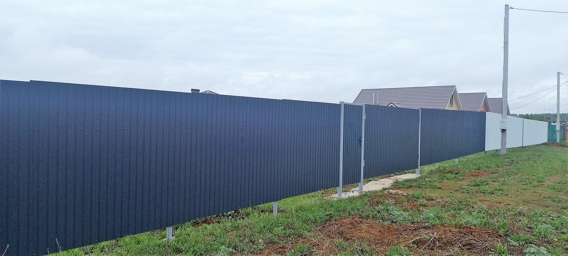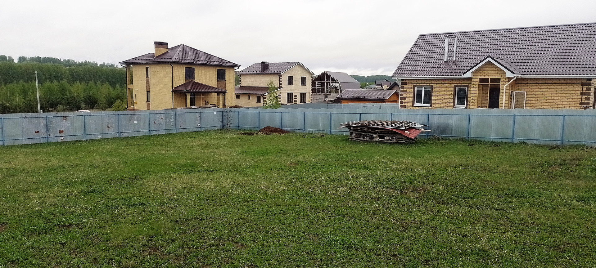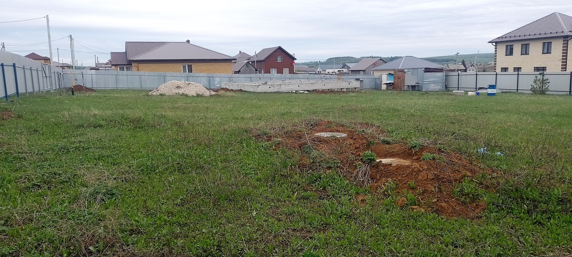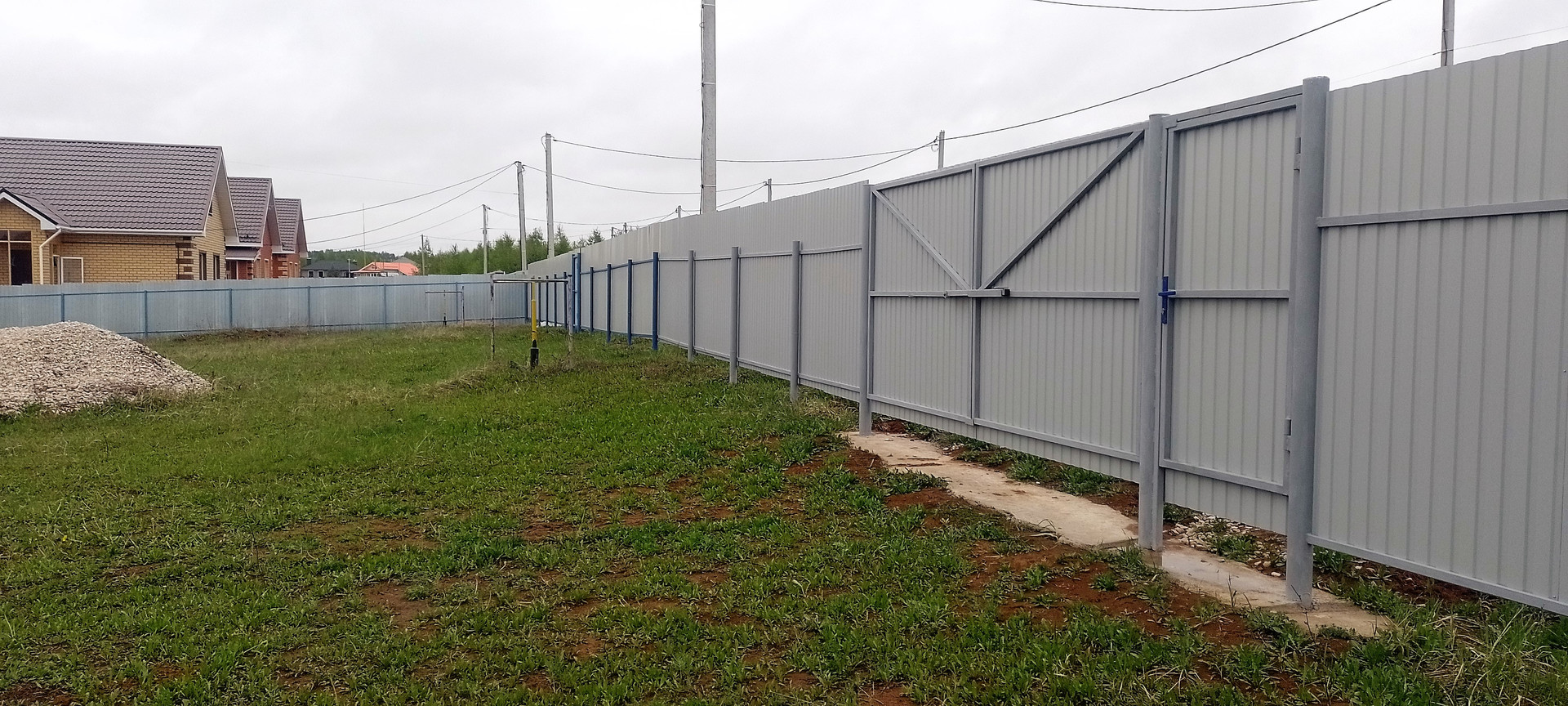 Участки ограждены забором h-2м, устанавливали сами. Ворота (4,05м) и калитки (1м) цельносварные с перемычками, залиты сплошником - 4 куба бетона.