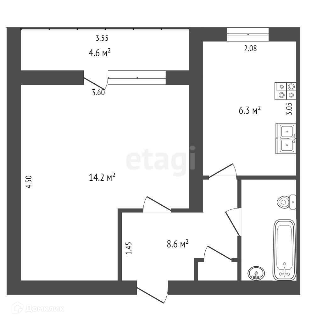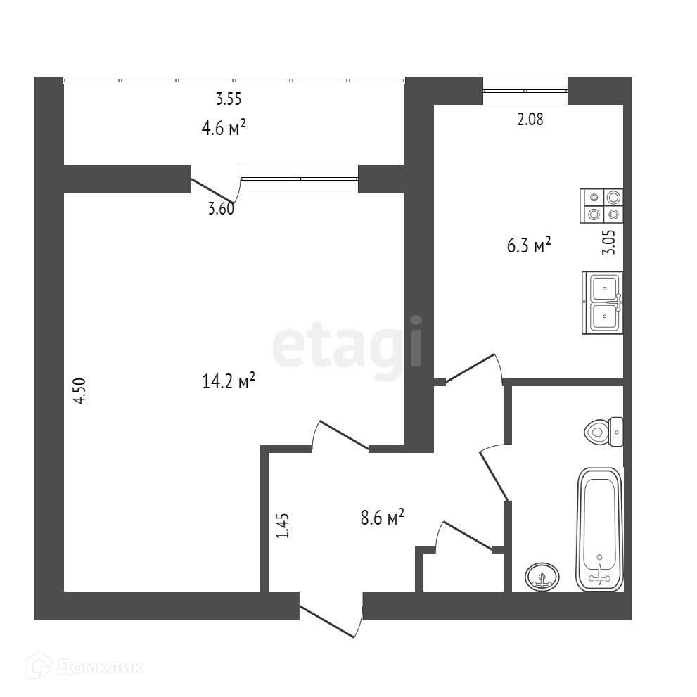 Площадь кухни 6.3 м2