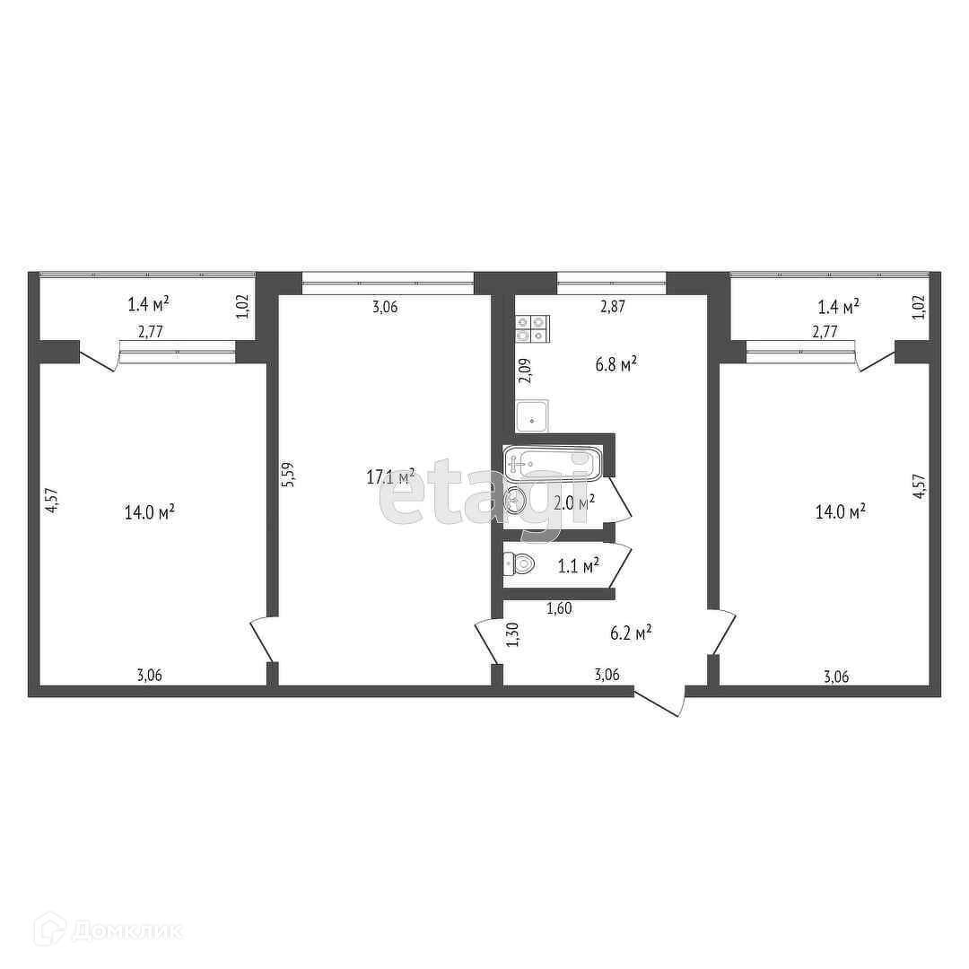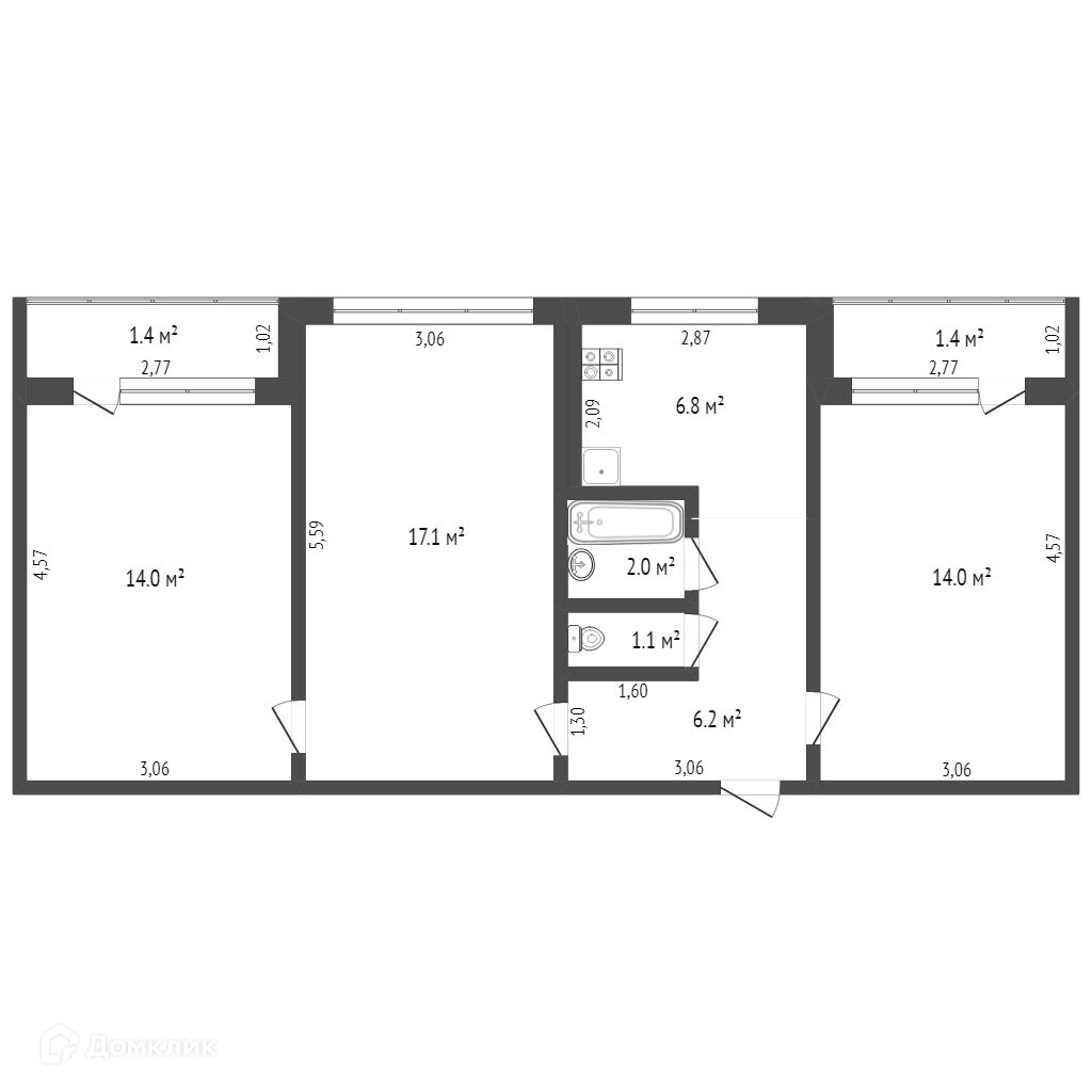 Общая площадь 64 м2