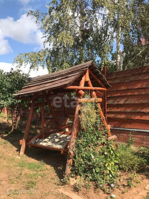 Участок 18 соток, вольер для двух собак, новая теплица, деревянные качели, беседка, отличная русская баня на дровах, дровенник, большое количество садовых деревьев, культурных растений, цветов, по всему периметру участка капитальный забор.