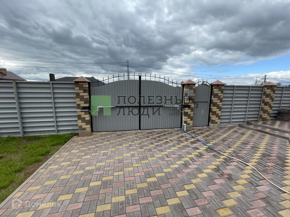 Перед воротами и во дворе плитка и газоны.