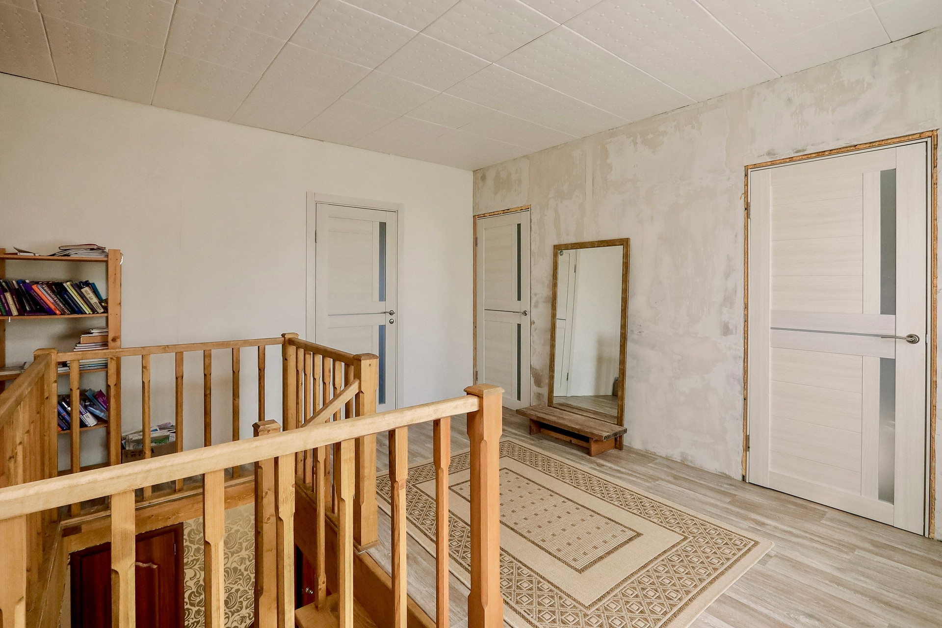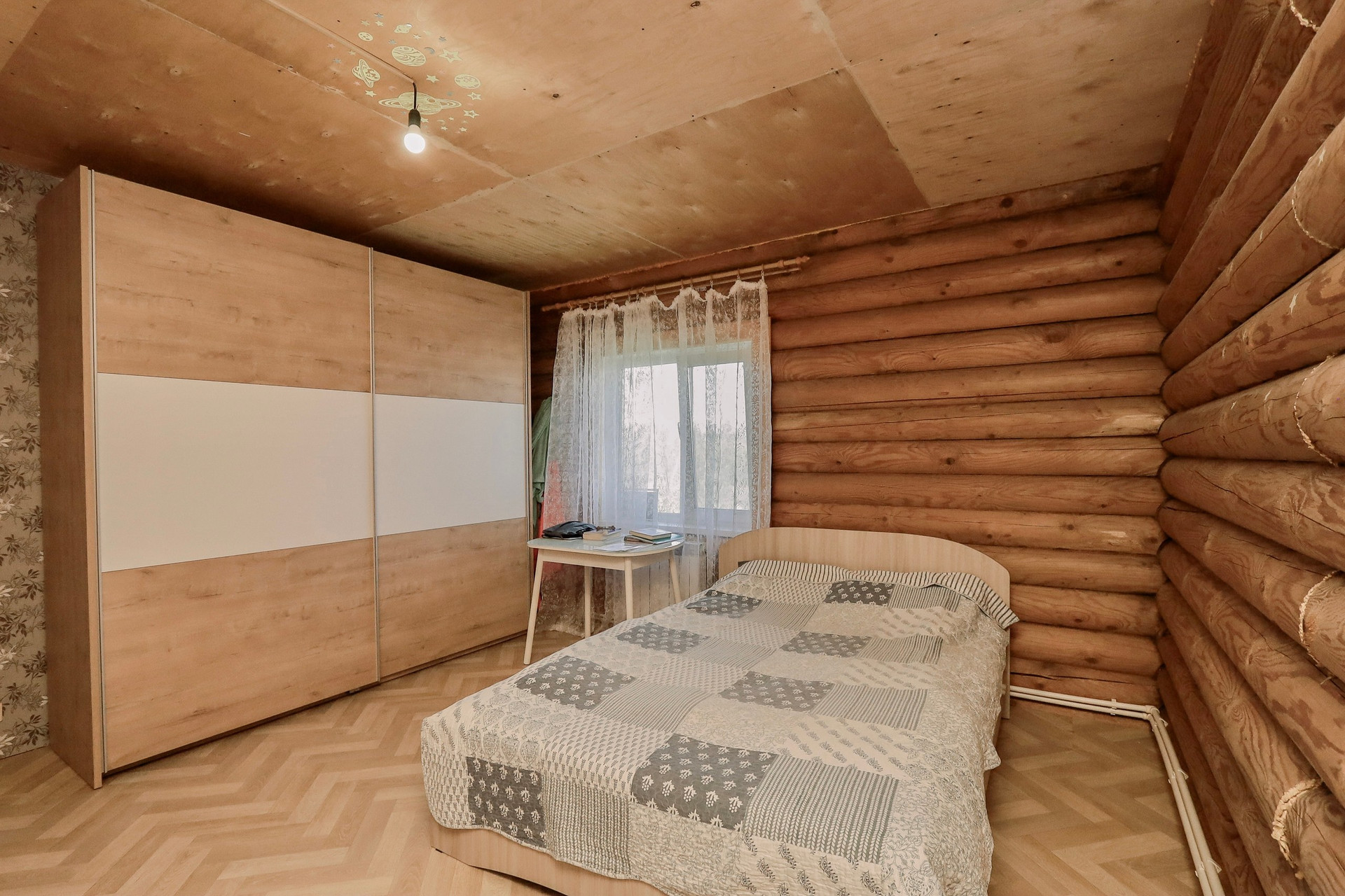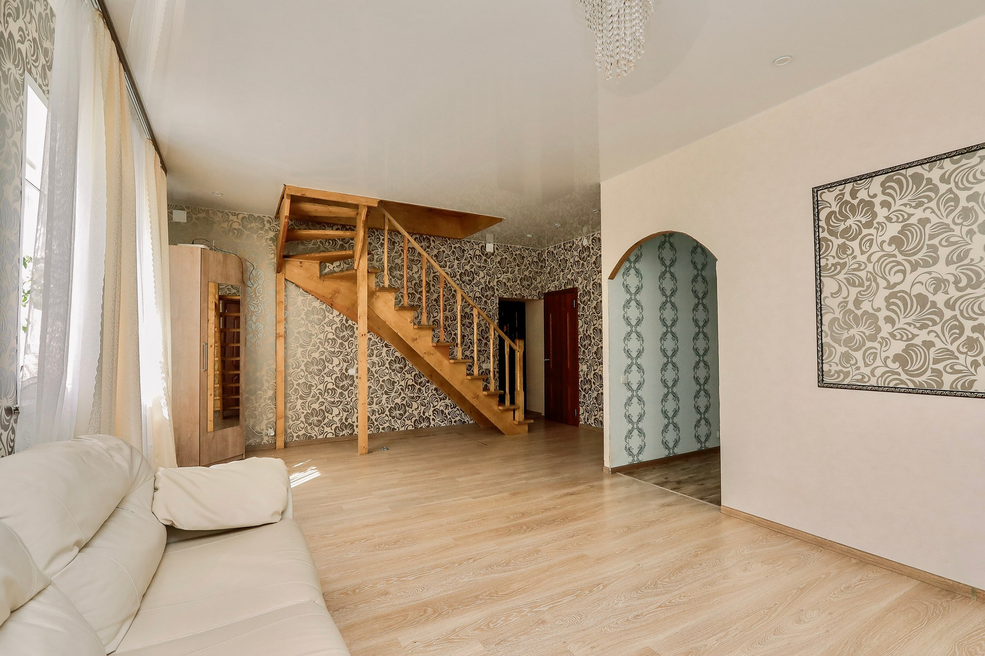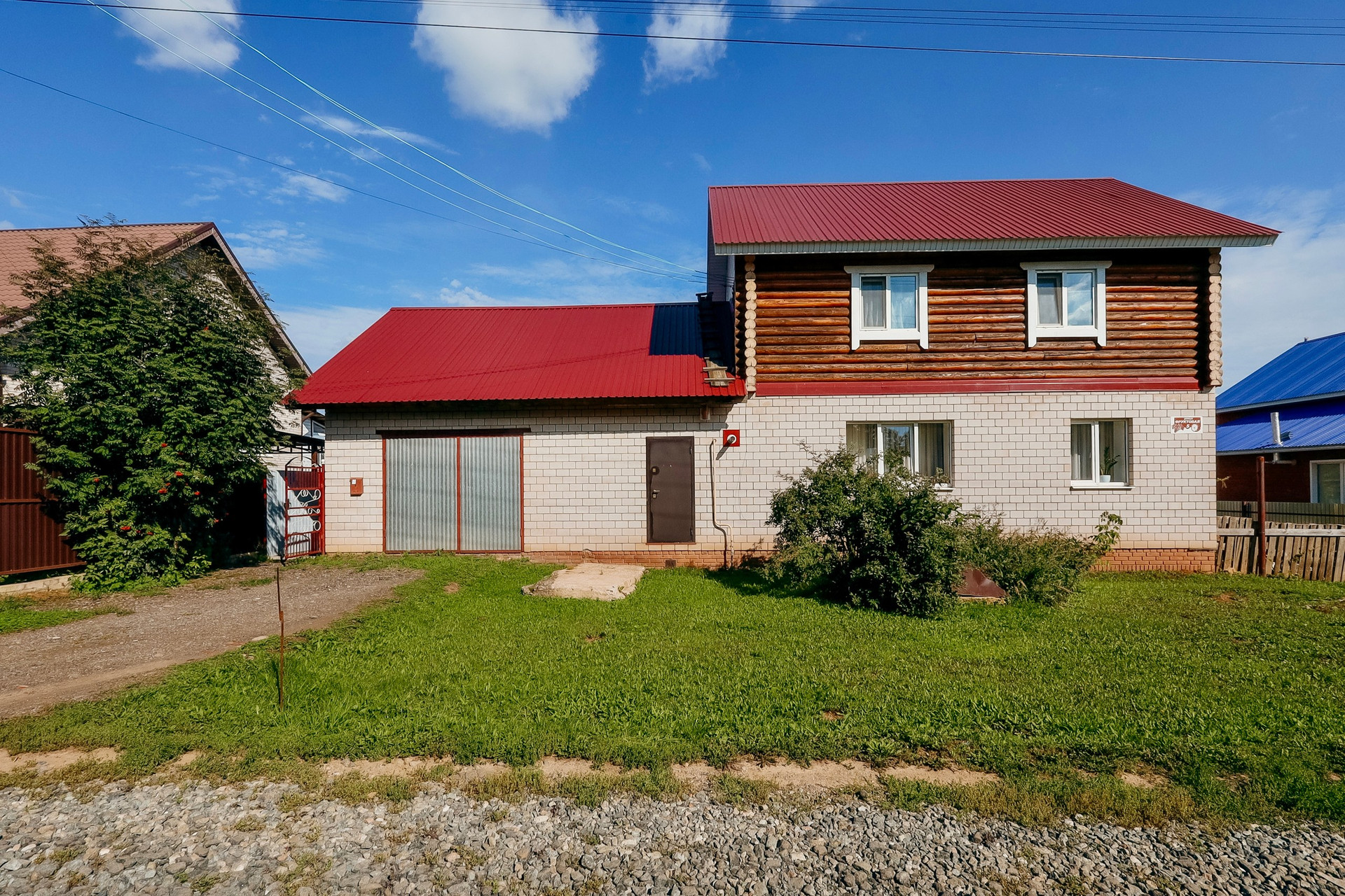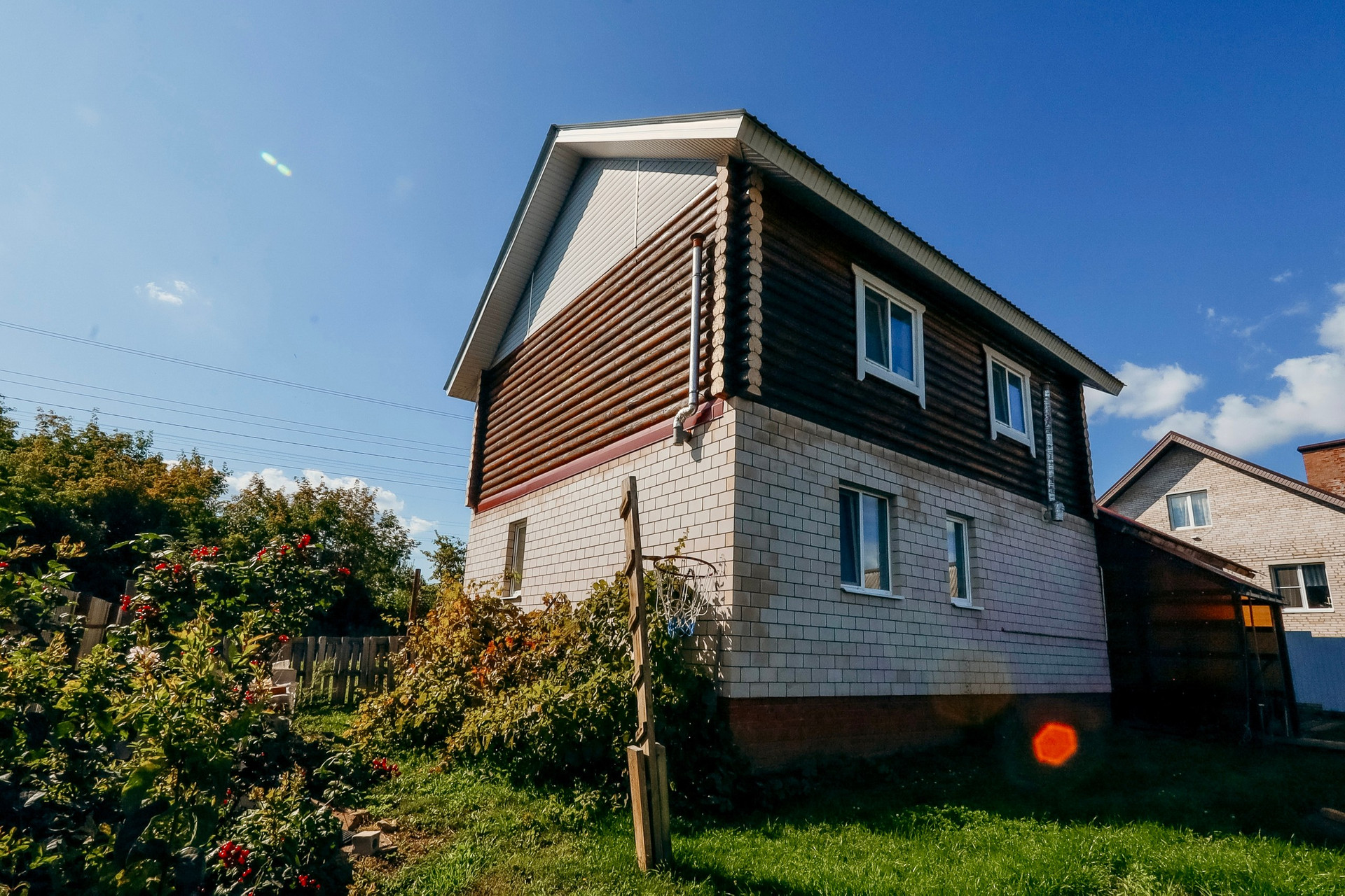 Дом в отличном состоянии. На первом этаже просторная гостиная 37кв.м , кухня 15кв.м, ванная и санузел. На втором этаже три изолированные комнаты - 14, 16 и 19кв.м. Под всем домом подполье высотой 2 метра. Вход в основную часть дома через тёплый тамбур 21кв.м, в котором установлен газовый котёл. Кирпичный гараж 37кв.м. Небольшая, но жаркая баня. Участок 15 соток.
