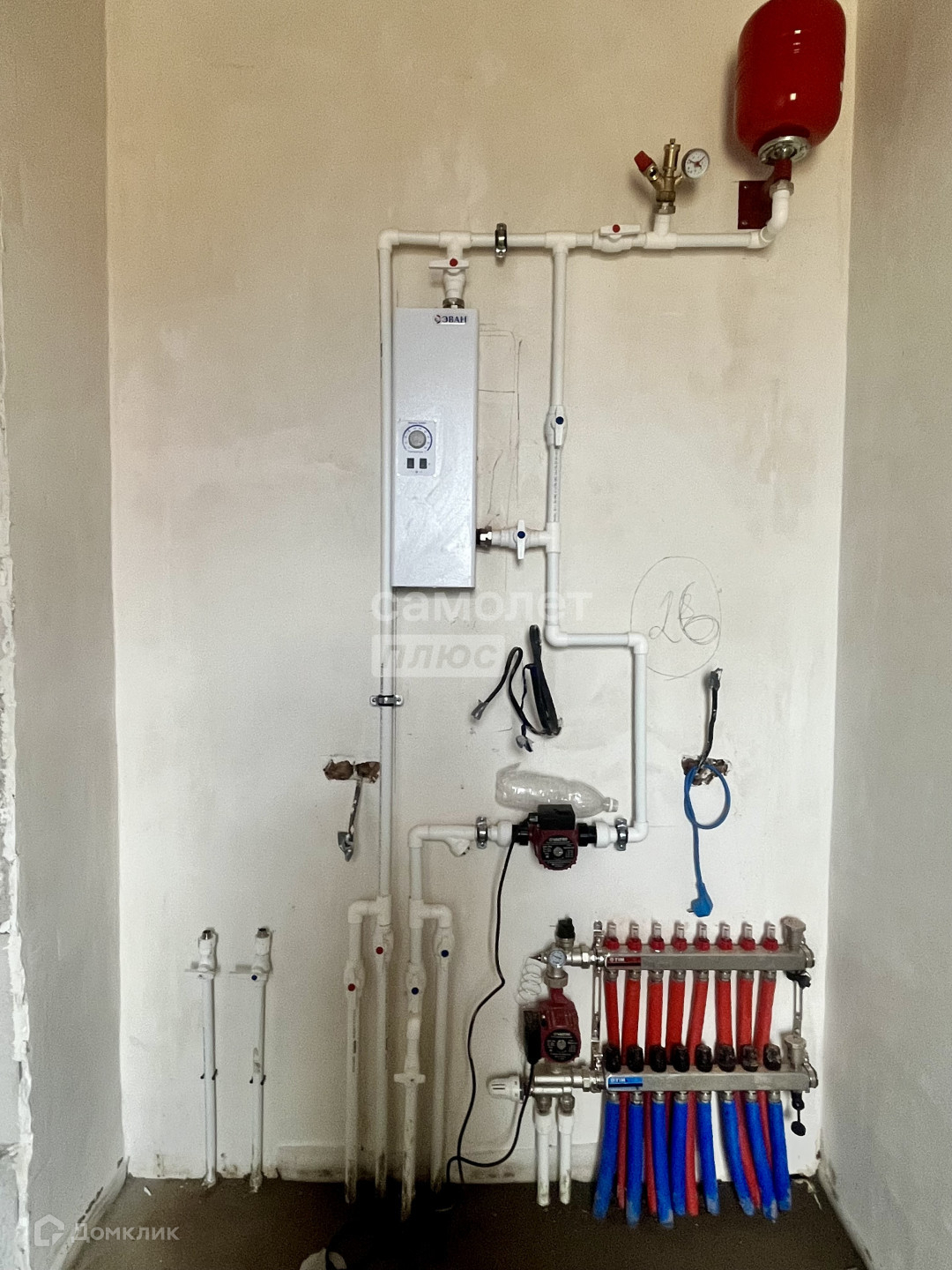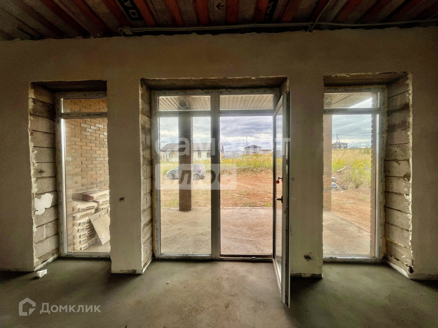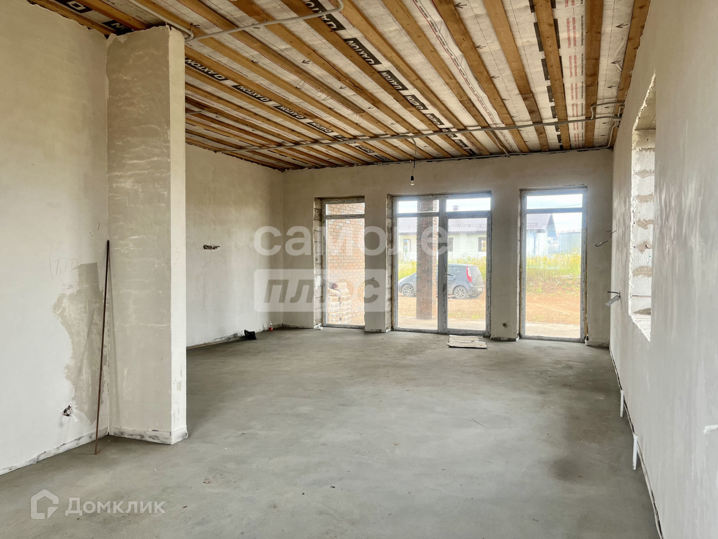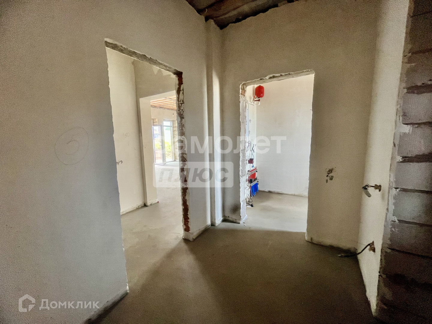 В доме выполнена предчистовая отделка: Полусухая стяжка пола, Стены отштукатурены,Теплый пол во всех помещениях(отдельно можно отключать контуры), кроме гардеробной, Электро-котел, Скважина на 60 м, Выгребная яма 3 кольца (4,5 куба), Канализация, Электричество, 50 точек розеток и включателей, двухкамерные ПВХ окна.