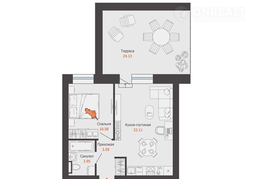 Общая площадь 47 м2