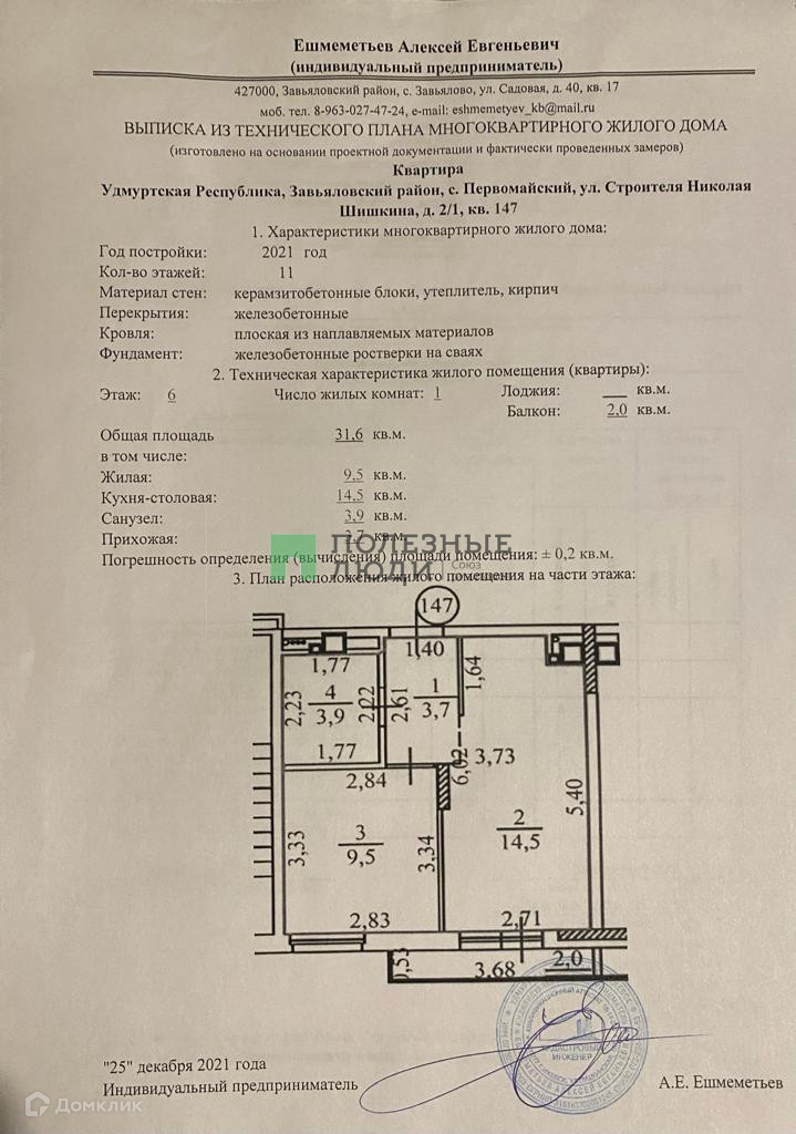 1-комнатная квартира, 32 м2, этаж 6 / 10, на продажу в селе Первомайский, улица Строителя Николая Шишкина, 2/1