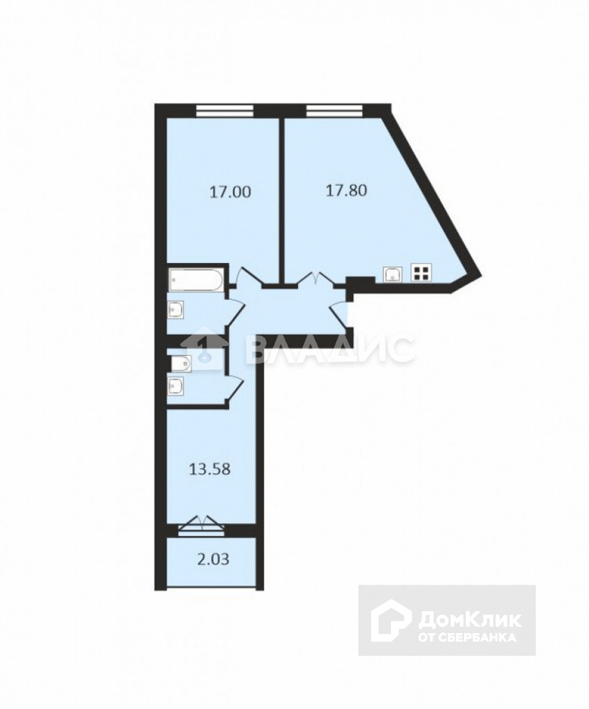 Санузел 1 совмещенный и 1 раздельный