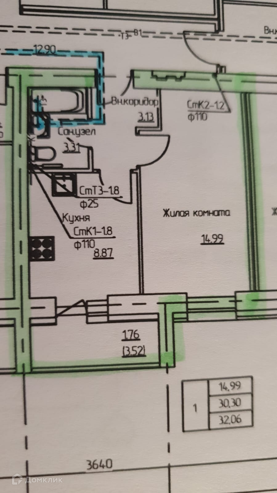 Общая площадь 32.06 м2