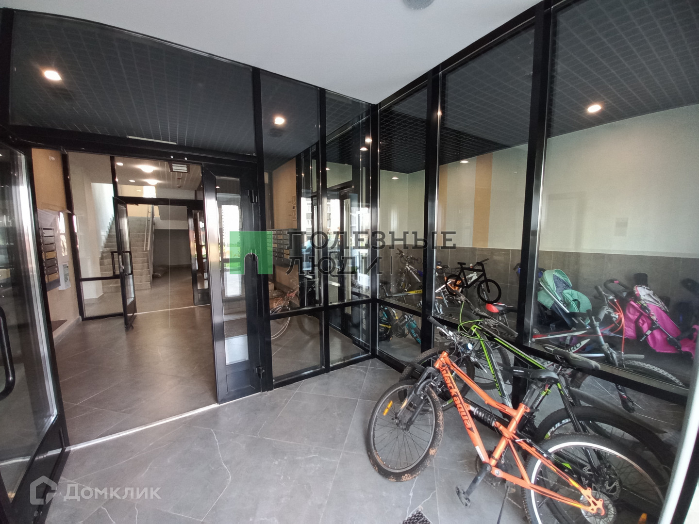 Дизайнерский холл с колясочной, велосипедной.