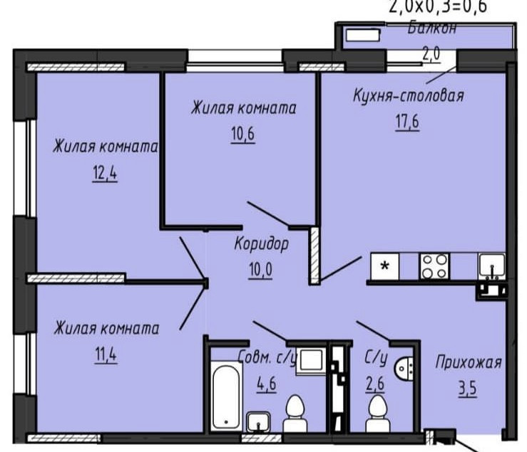 Общая площадь 74 м2
