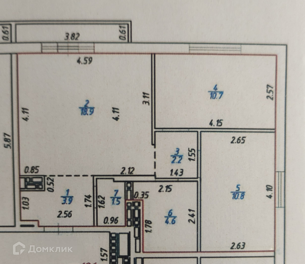 Общая площадь 52.6 м2
