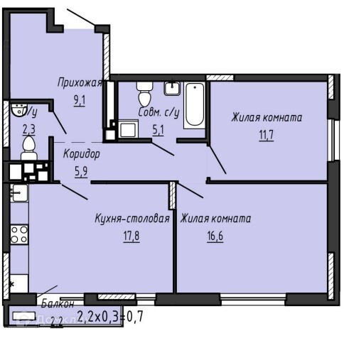 Общая площадь 70.4 м2