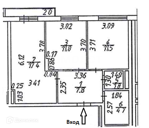 Общая площадь 54.4 м2