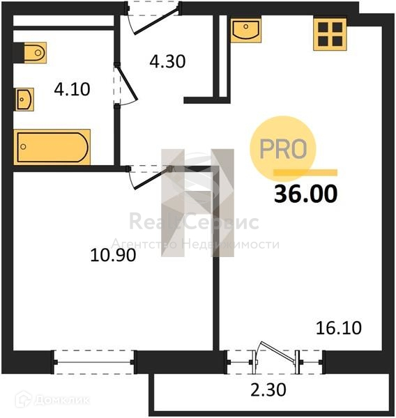 Общая площадь 36 м2