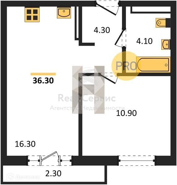 Общая площадь 36 м2
