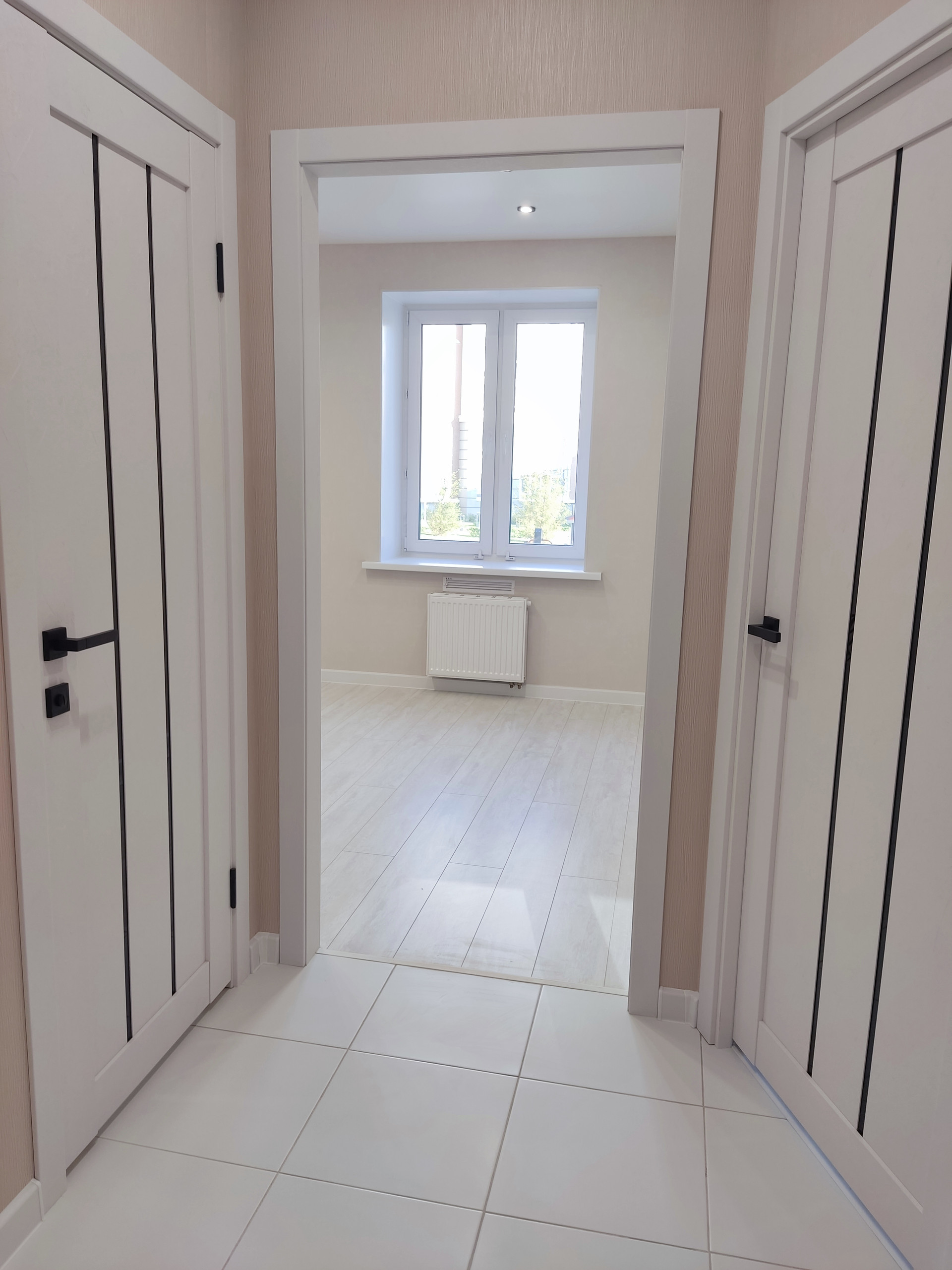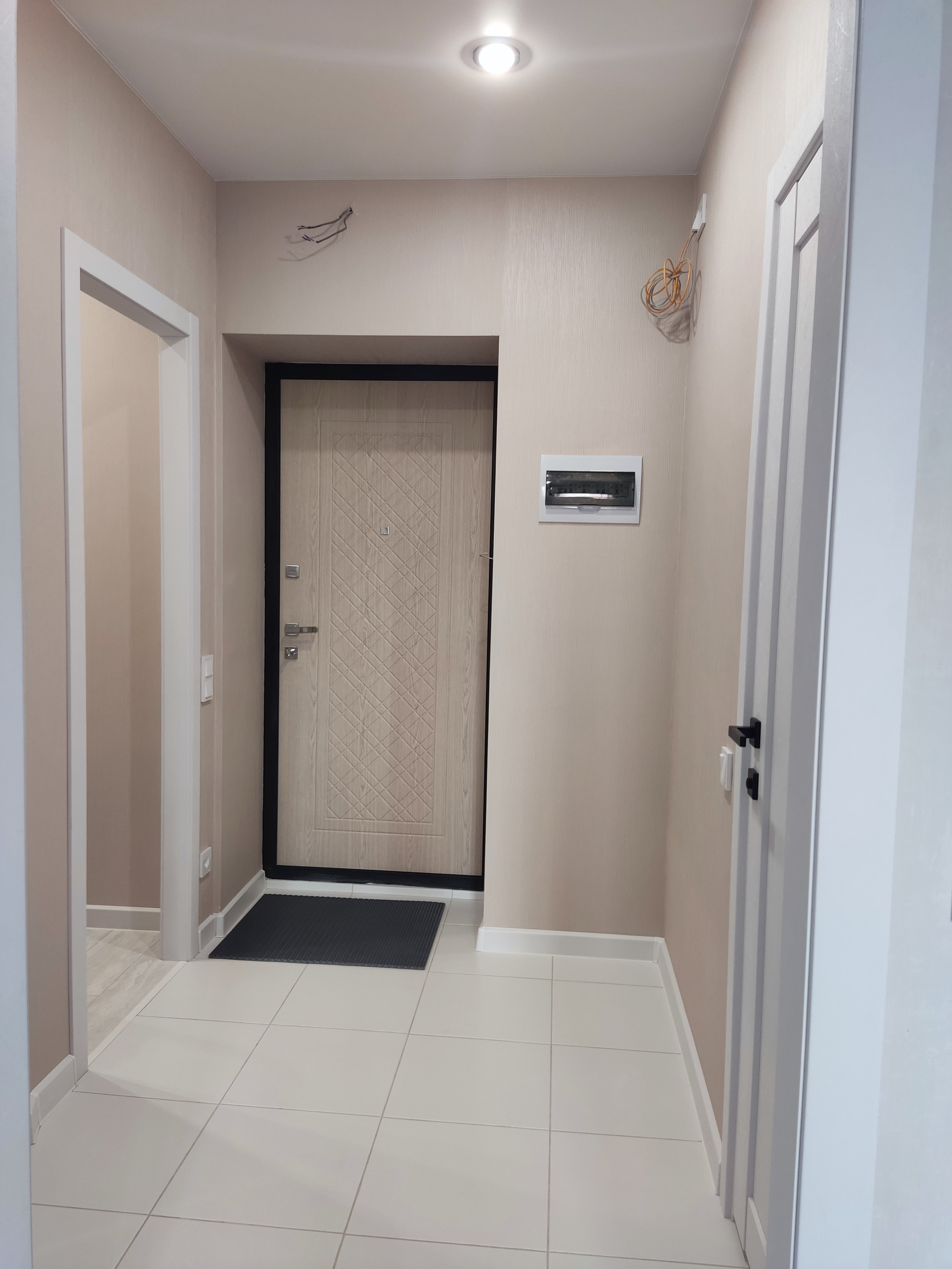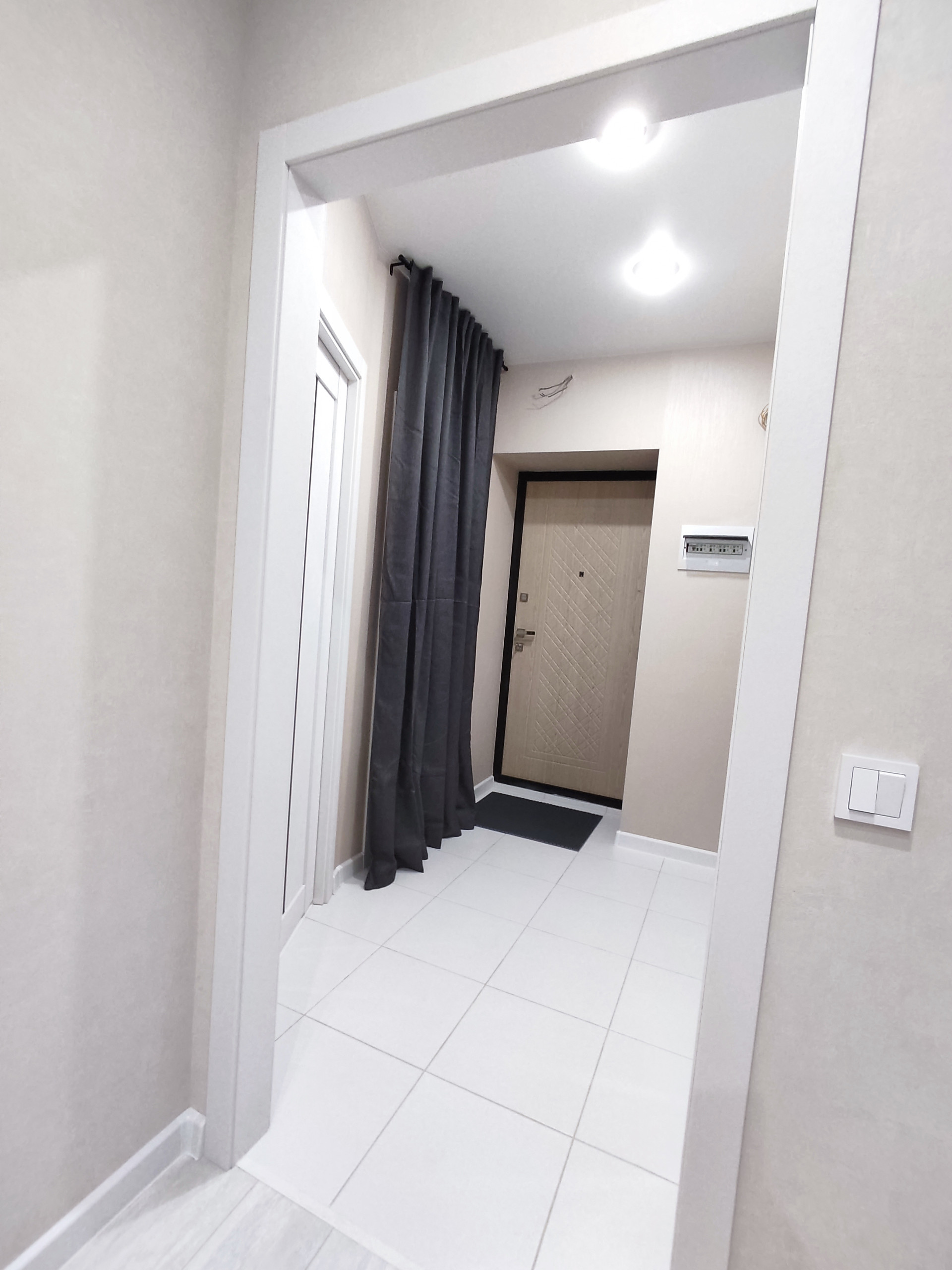 В квартире сделана отделка из современных материалов. Санузел в кафеле, на полу керамогранит, сделана инсталляция, душ. Есть гардеробная, достаточно вместительная,