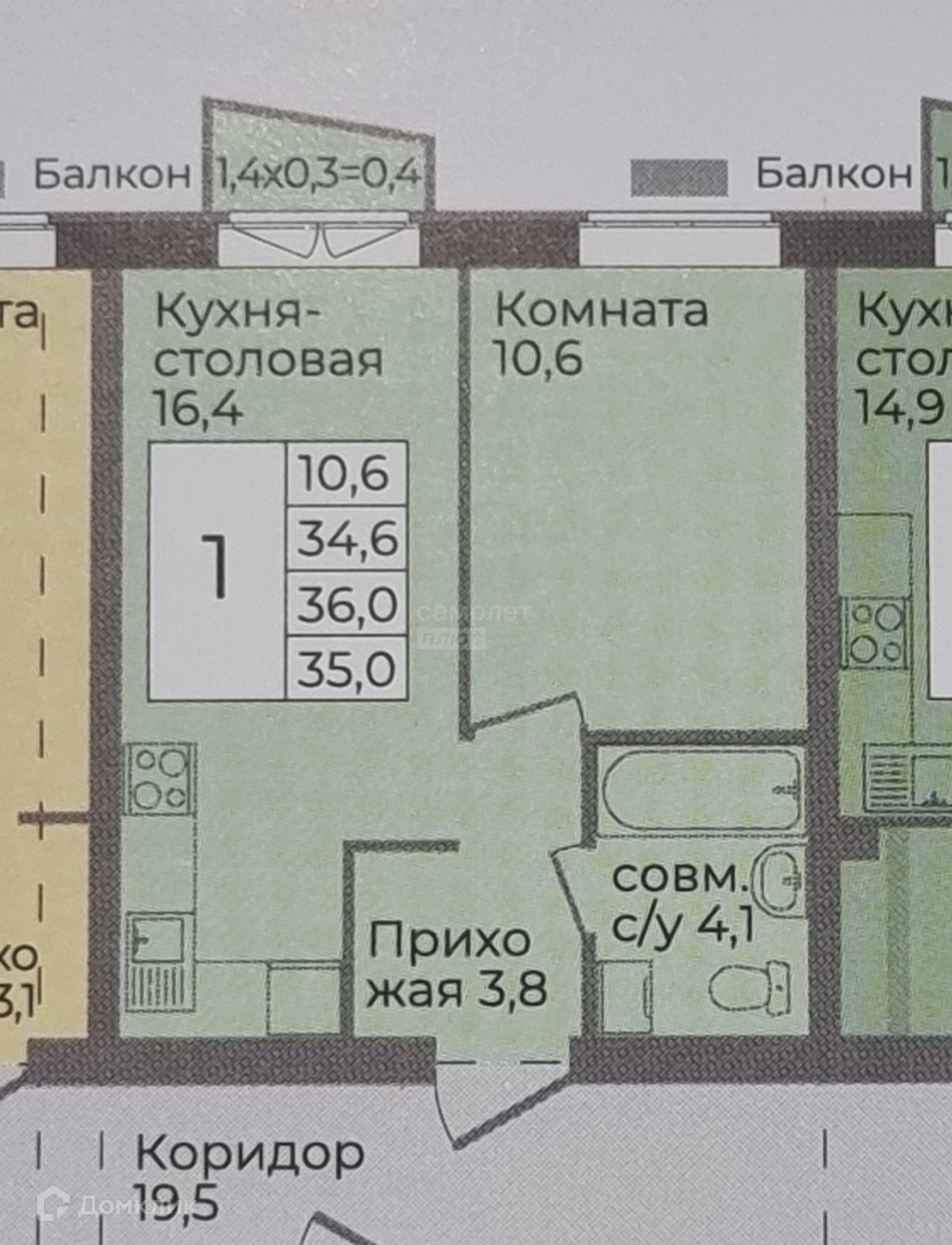 Общая площадь 36 м2
