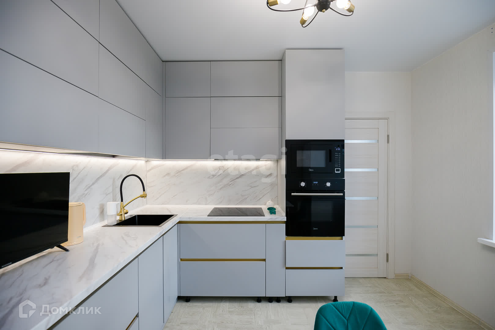 В стоимость квартиры входит только кухонный гарнитур. Остальная мебель и техника могут быть обсуждены отдельно.