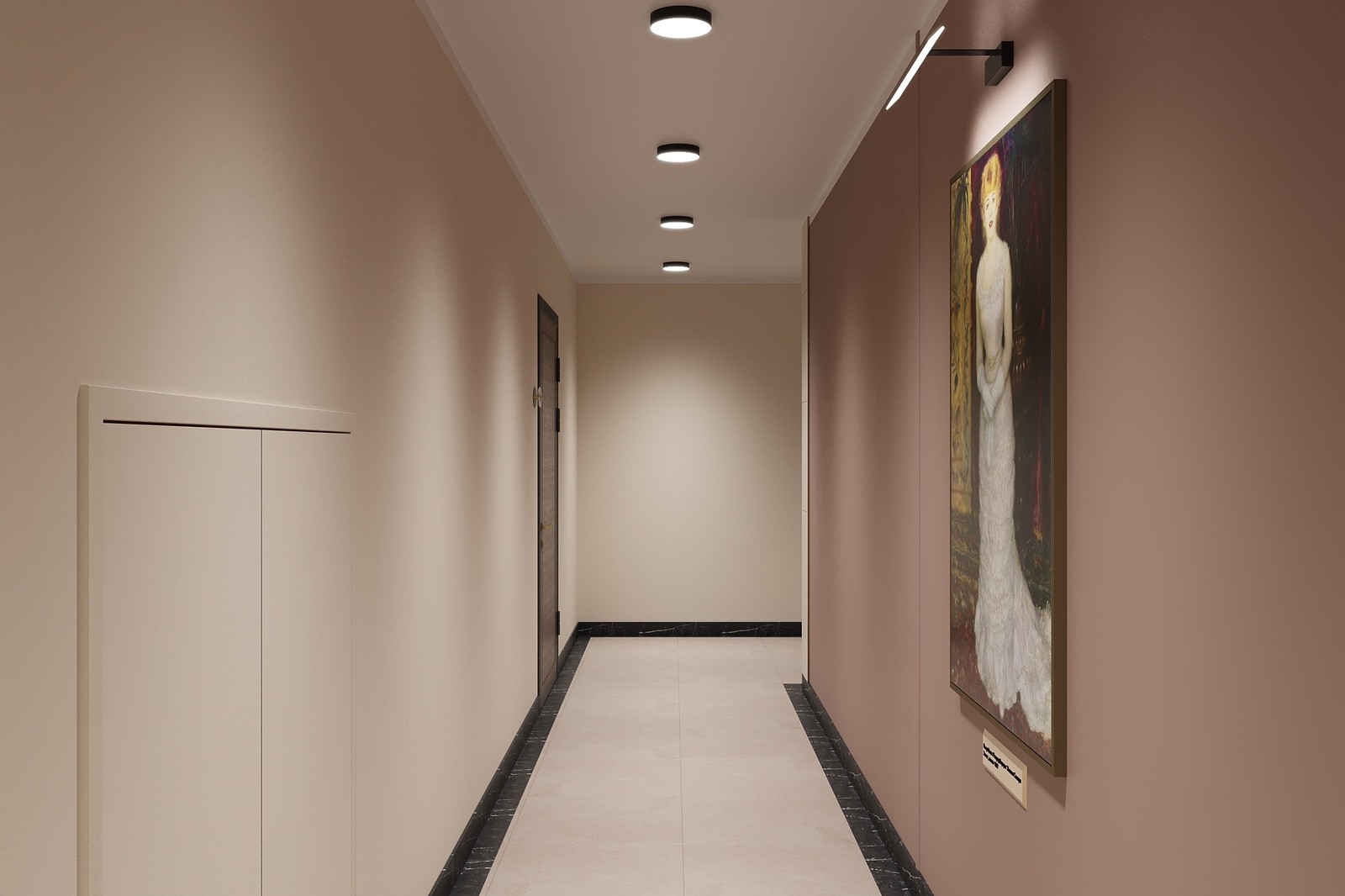 -По всей квартире предусмотрен белый матовый натяжной потолок, который уже давно зарекомендовал себя как одно из самых эстетичных и практичных решений.
