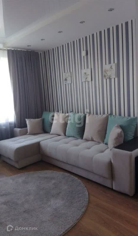 В комнате установлен большой мягкий диван, который служит местом для отдыха и приёма гостей. Кухня просторная и функциональная, оборудована необходимой техникой и мебелью.