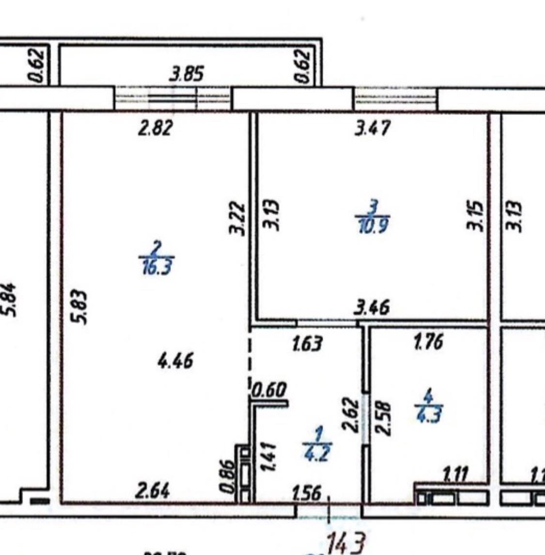 Жилая площадь 10.6 м2