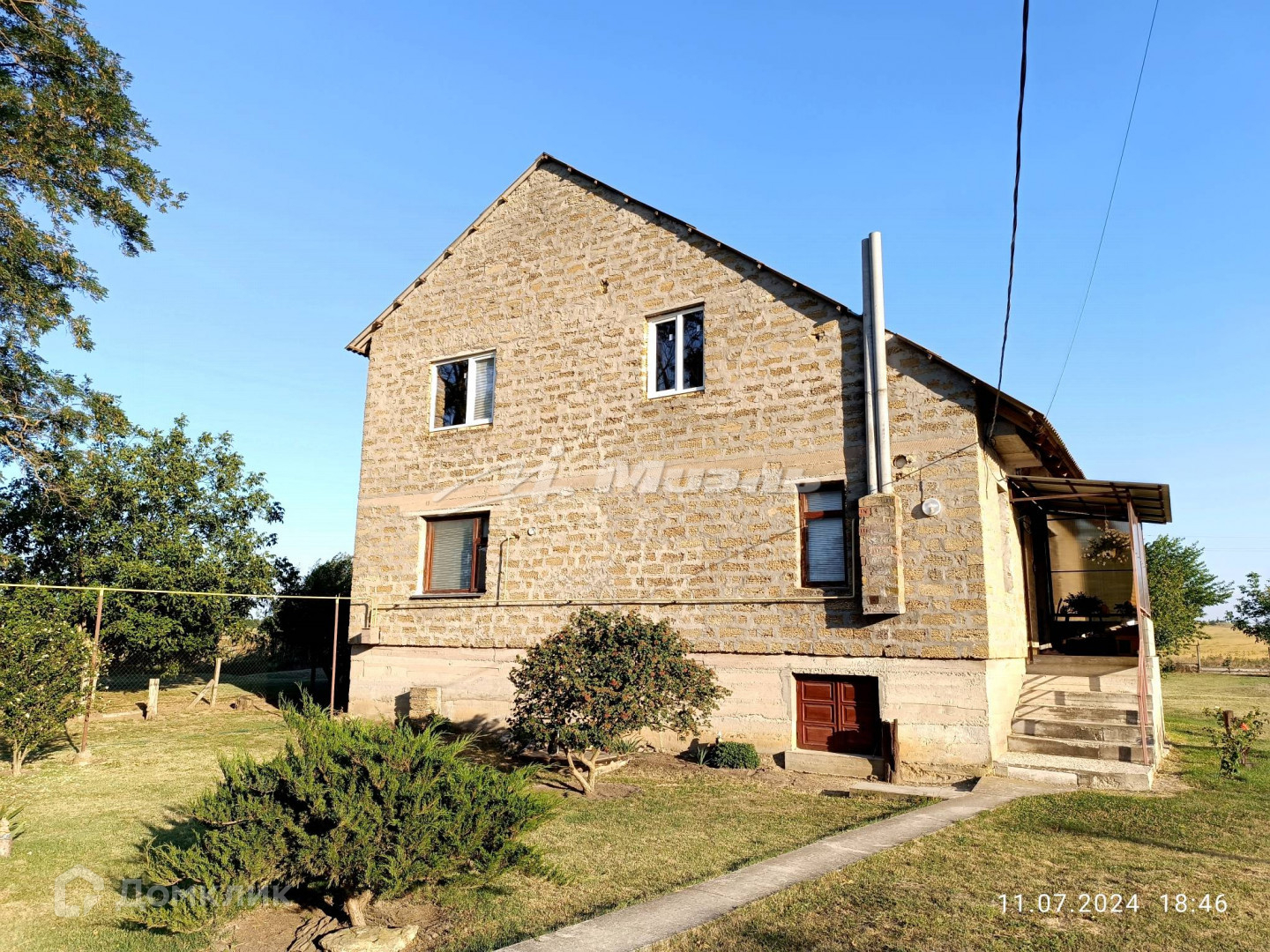 Дом двухэтажный, на высоком цоколе построенный в полный камень.