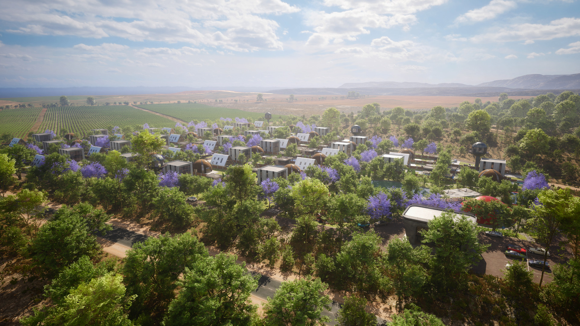 Атмосферный посёлок отличает оригинальная звездная концепция, которой нет больше нигде в России: сиреневые цветущие павловнии, проекты домов, вдохновленные космическими мотивами, и телескоп в каждом доме, чтобы быть еще ближе к звездам
