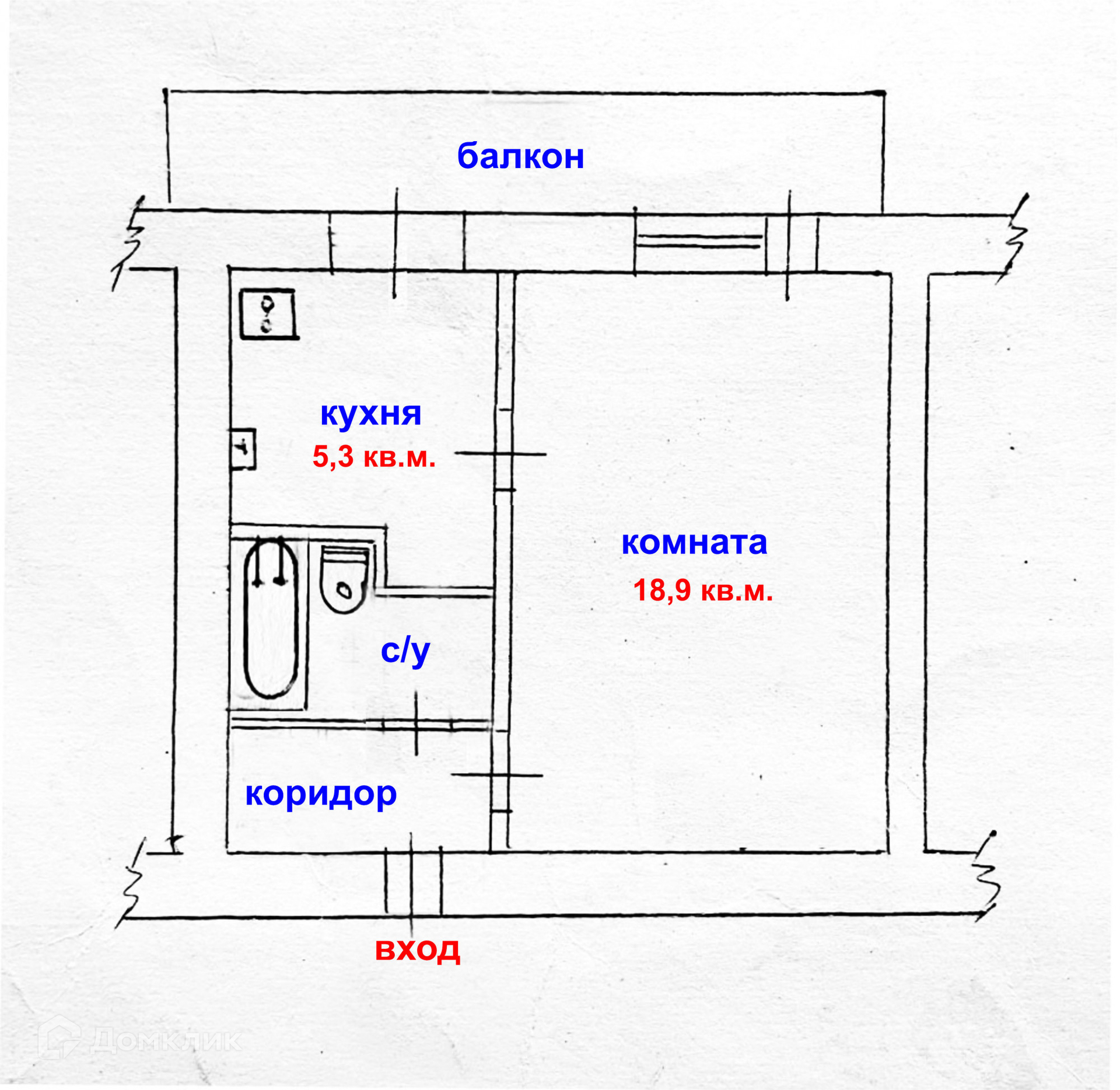 Общая площадь 32.9 м2