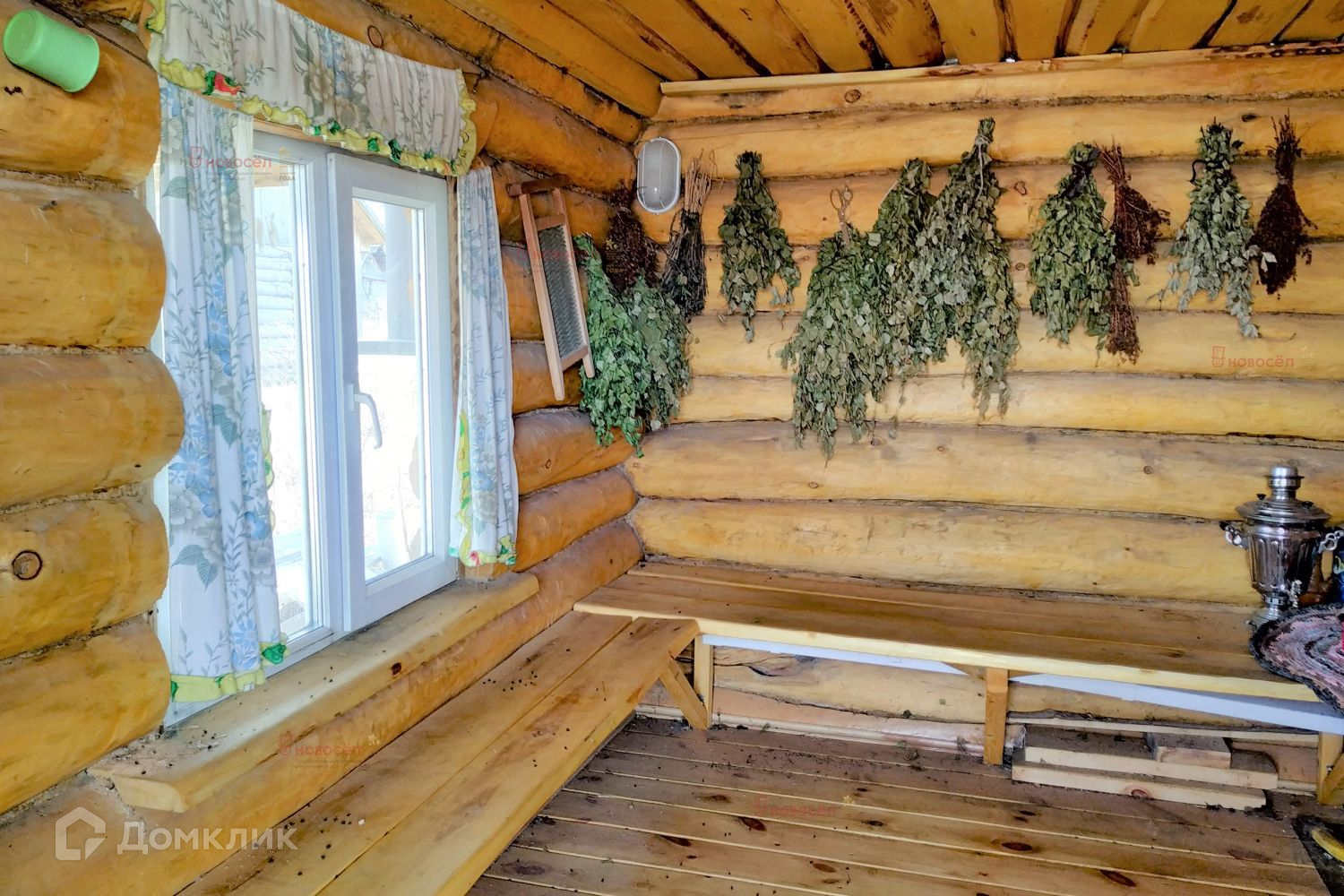 Отдельностоящая баня из бревна с парилкой, отделением для помывки, просторной комнатой отдыха и террасой. Заведена вода.