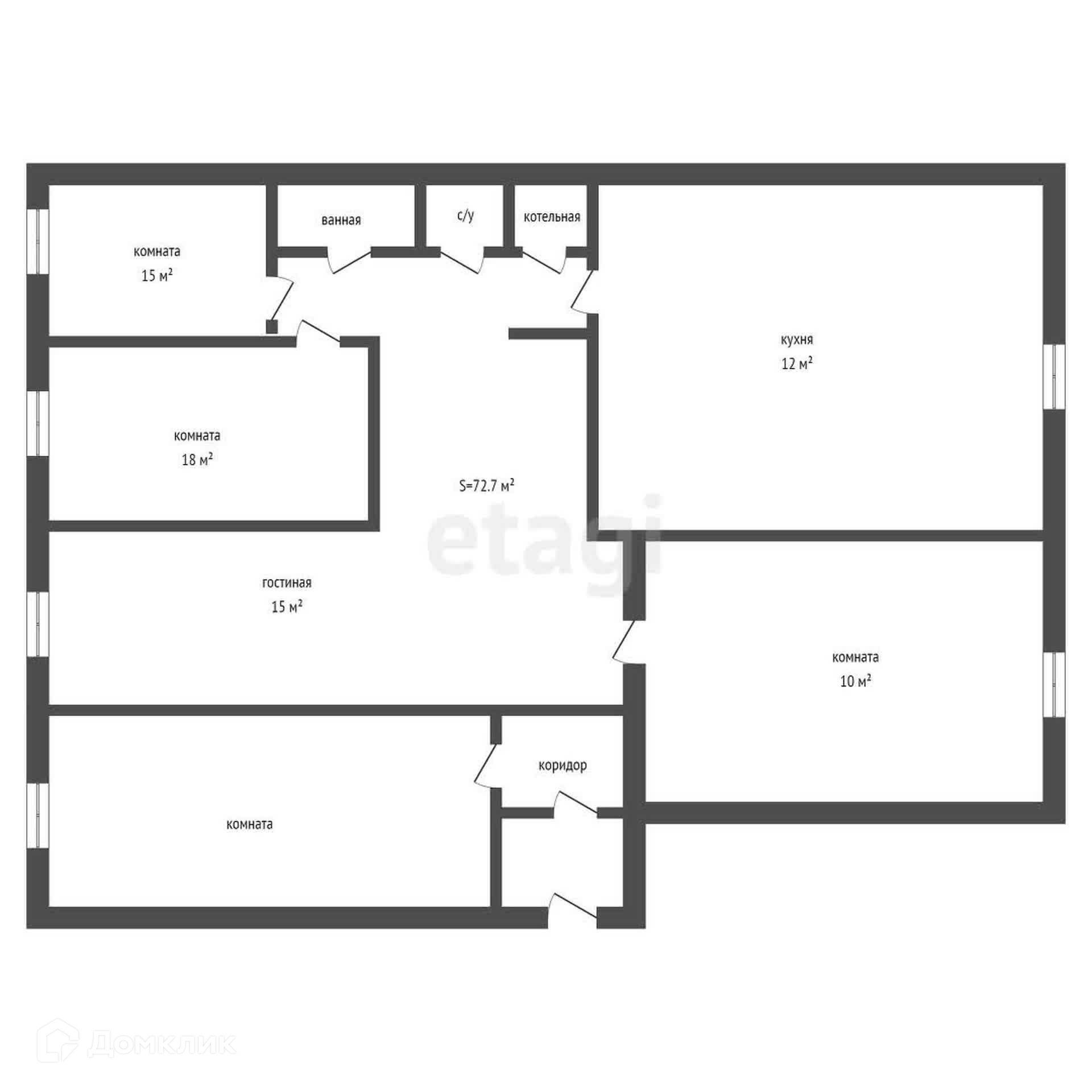 Общая площадь 72.7 м2