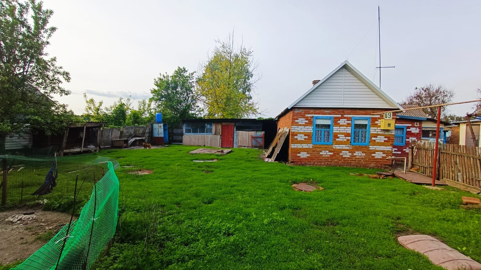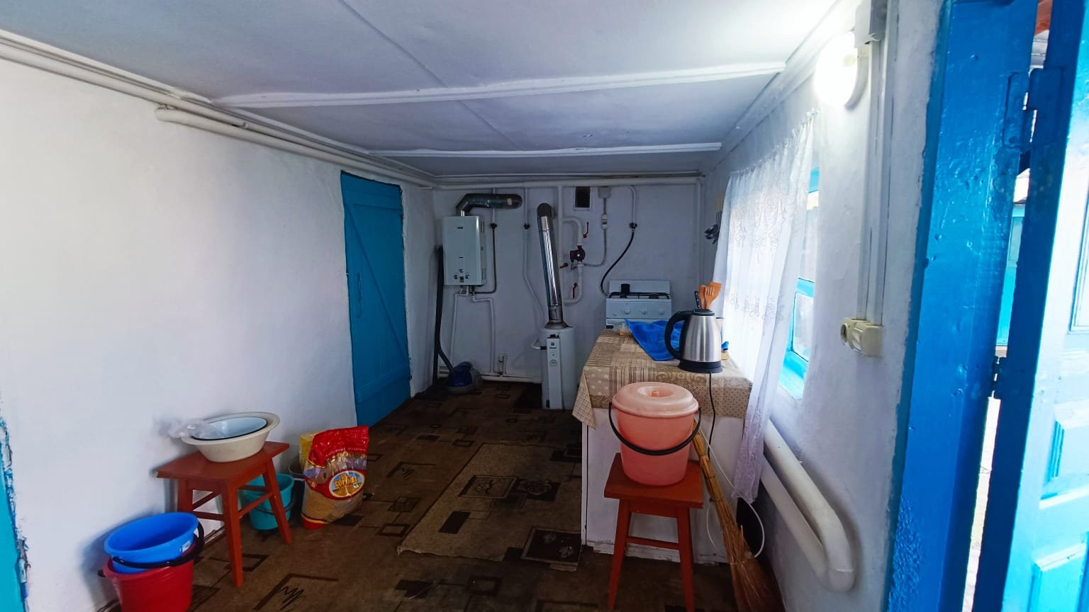 Напротив дома построена кирпичная летняя кухня, о.п. 33,3 кв.м.. Состоит их комнаты, большой кладовой и коридора. Стены и потолки обшиты пластиковыми панелями, полы - дощатые. Установлена ванная. Установлены счетчики на коммуникации. Автоматический газовый водонагреватель. Отопление - напольный газовый котел. Входная дверь - деревянная. Из хоз.построек: помещения свободного функционала, летний душ, птичники, уличная колонка для полива. Канализация септик. Ухоженный земельный участок 25 и 26 соток, с фруктовыми деревьями и кустарниками. Огород имеет выход к реке. Металлопрофильный забор, ширина фасада 34,5 м.