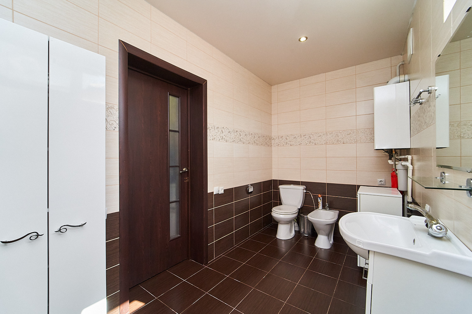 Коммуникации: электричество, газ, центральное водоснабжение, септик, дополнительно в наличии автономное водоснабжение (скважина 20 м.), автономное отопление и горячее водоснабжение.