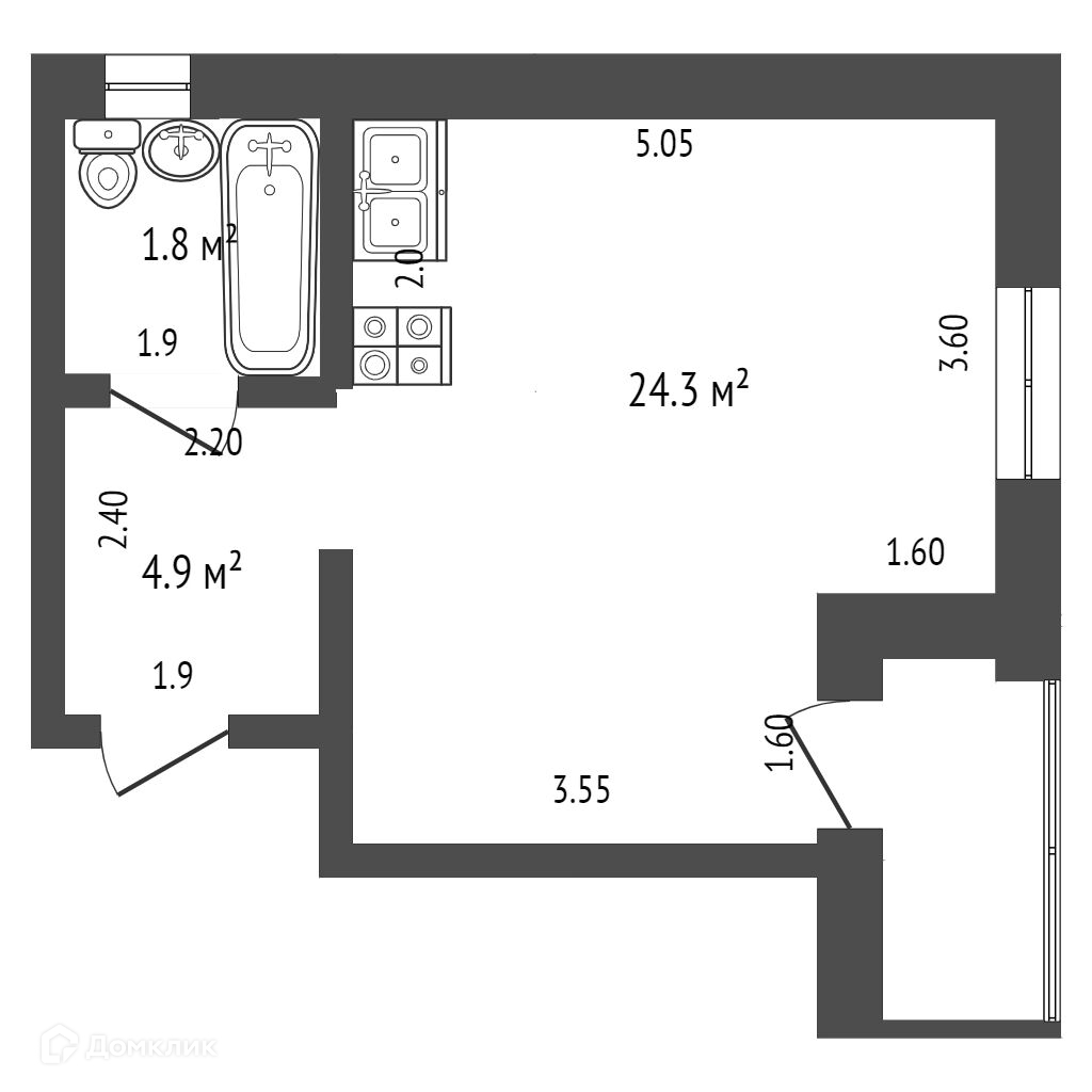 Общая площадь 32.6 м2