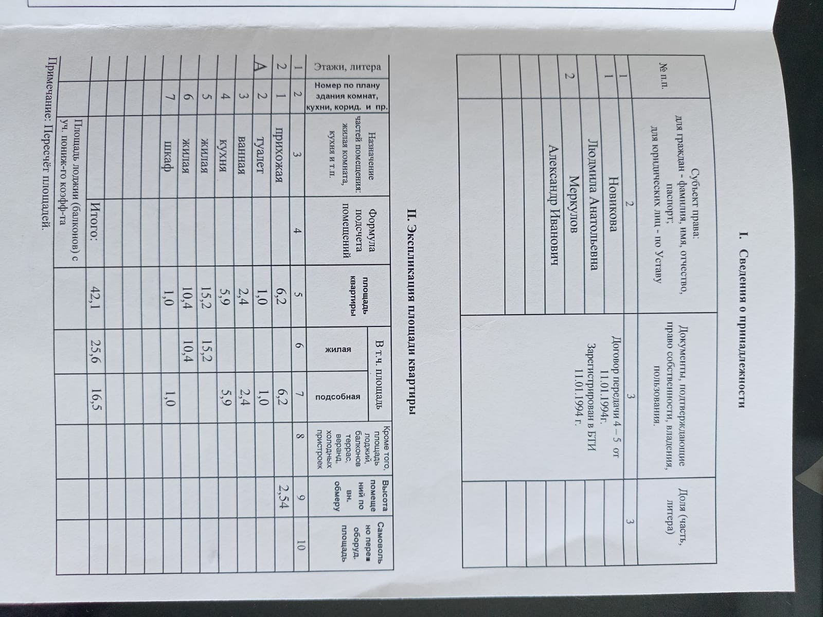 Общая площадь 42.1 м2